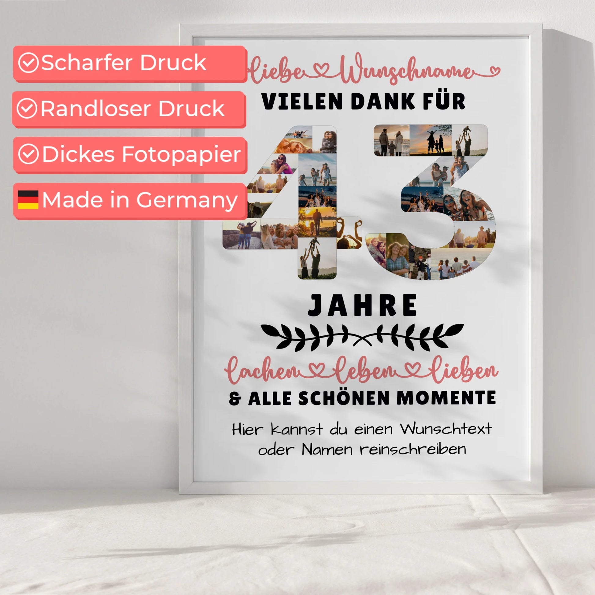 Dieses personalisierte Poster ist die ideale Geschenkidee zum 43. Geburtstag – nicht nur für Mama, Papa, Schwester oder Bruder. Es ist auch ein wundervolles Geschenk für Sohn, Tochter, die beste Freundin, Neffe, Nichte, Oma, Opa oder die Tante. Zeige ihnen, wie besonders sie für dich sind!