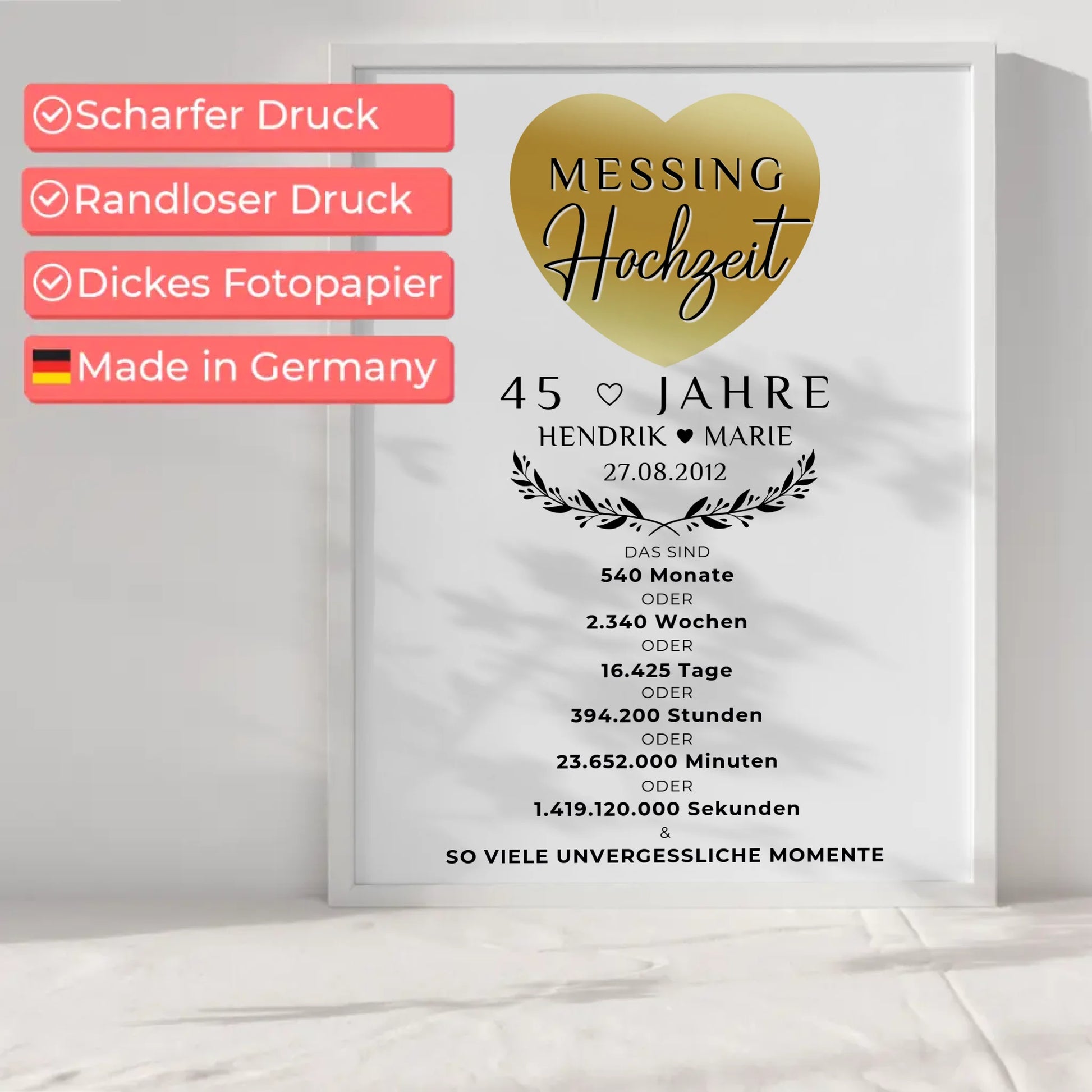 Personalisiertes Poster 45 Hochzeitstag Geschenk Messinghochzeit