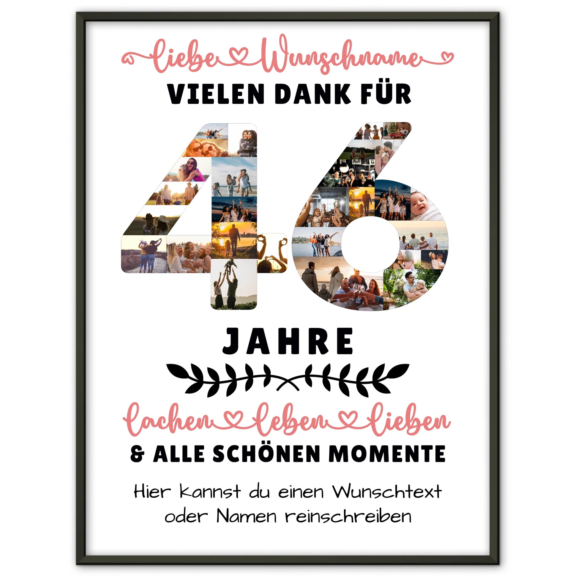 Gestalte jetzt dein persönliches Meisterwerk und schaffe ein unvergessliches Geschenk zum 46 Geburtstag! Ein personalisiertes Poster ist mehr als nur Deko – es ist eine bleibende Erinnerung voller Liebe für Papa, Mama, Schwester, Bruder und viele mehr.