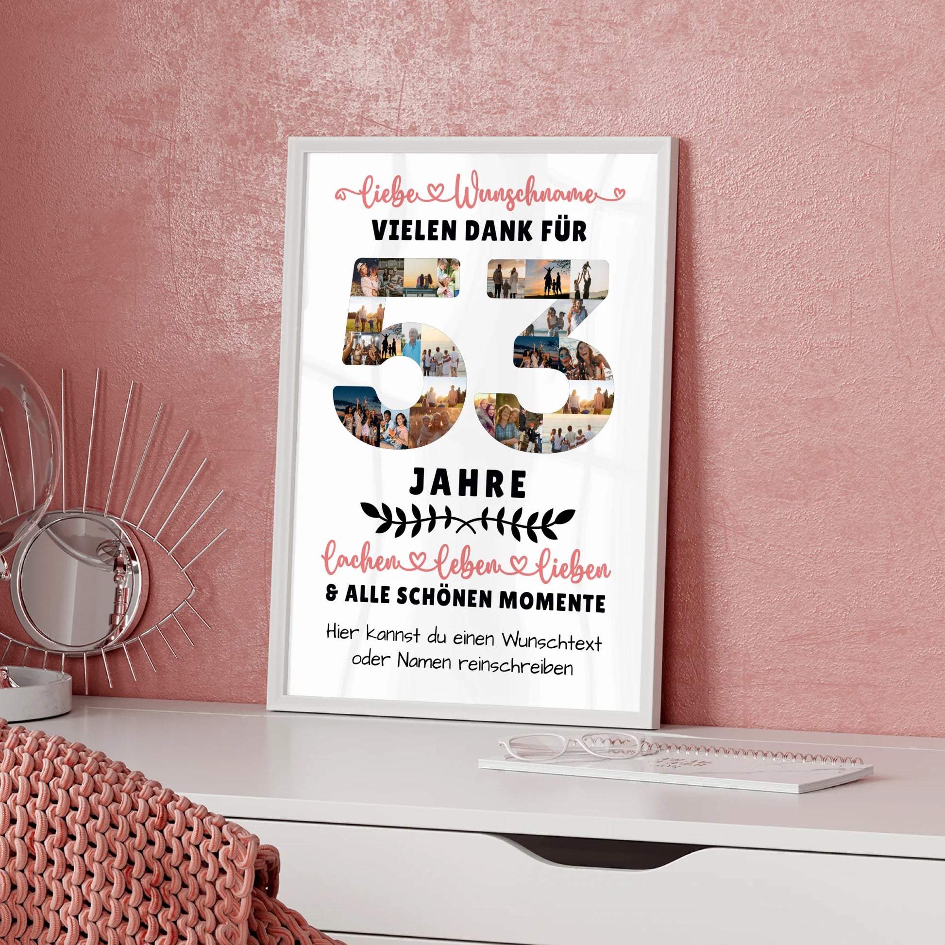 Mache den 53 Geburtstag zu einem unvergesslichen Ereignis! Bestelle jetzt dein personalisiertes Poster und gestalte ein Geschenk, das von Herzen kommt und garantiert für Freude sorgt. Das ideale Geschenk für Papa, Mama, Schwester, Bruder und alle wichtigen Menschen in deinem Leben, die ihren 53 Geburtstag feiern.