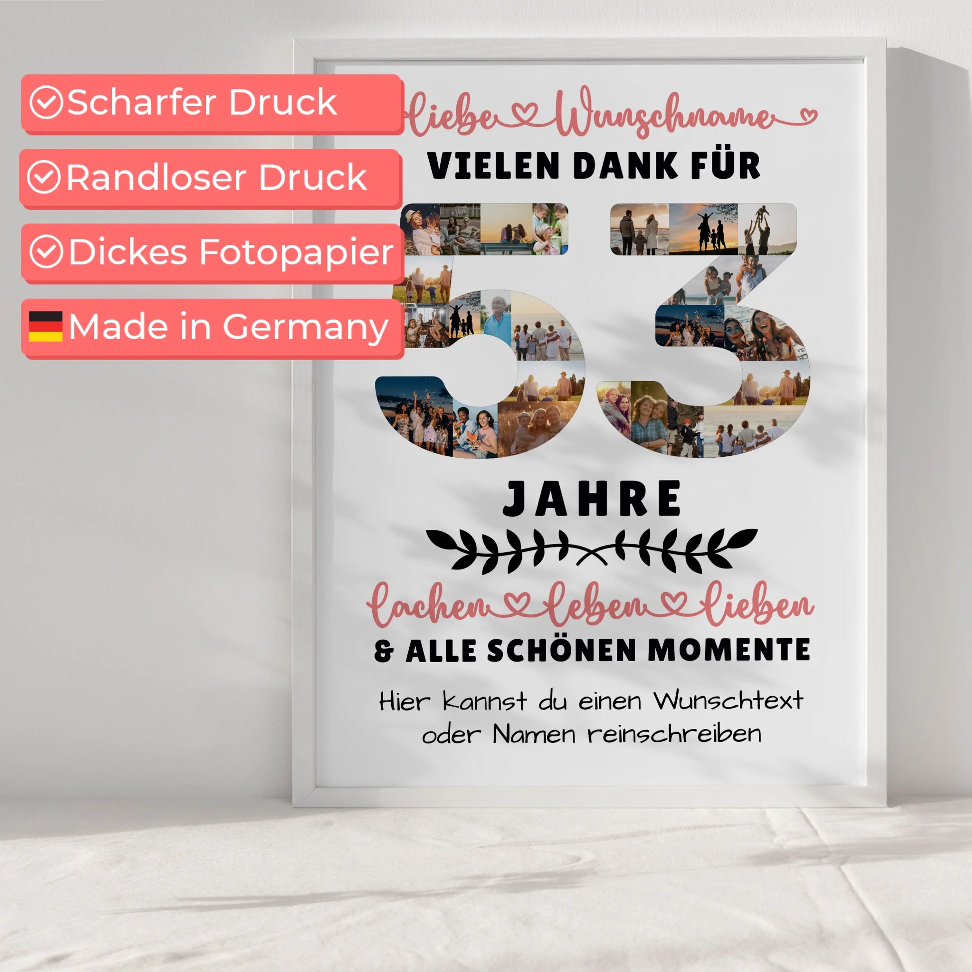 Ein personalisiertes Poster ist mehr als nur ein Geschenk – es ist eine Collage voller wertvoller Erinnerungen und Zuneigung, speziell gestaltet für den besonderen Anlass des 53 Geburtstag. Zeige deinem Papa, deiner Mama, deinem Bruder oder deiner Schwester mit diesem einzigartigen Präsent, wie viel sie dir bedeuten. Es ist das perfekte Geschenk, um Liebe und Wertschätzung auszudrücken.