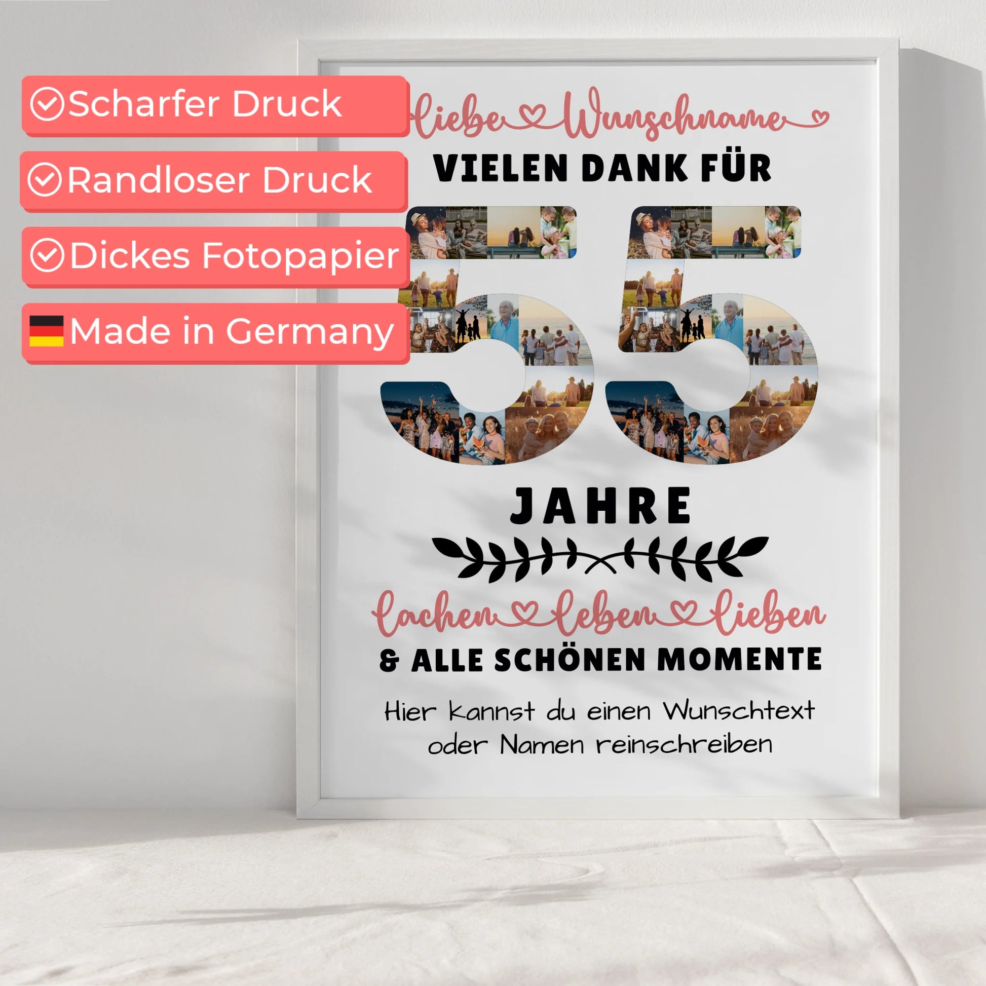 Ein personalisiertes Poster voller Erinnerungen ist mehr als nur ein Geschenk. Es ist eine Zeitreise, ein Ausdruck von Liebe und Wertschätzung, perfekt für den runden 55. Geburtstag.
