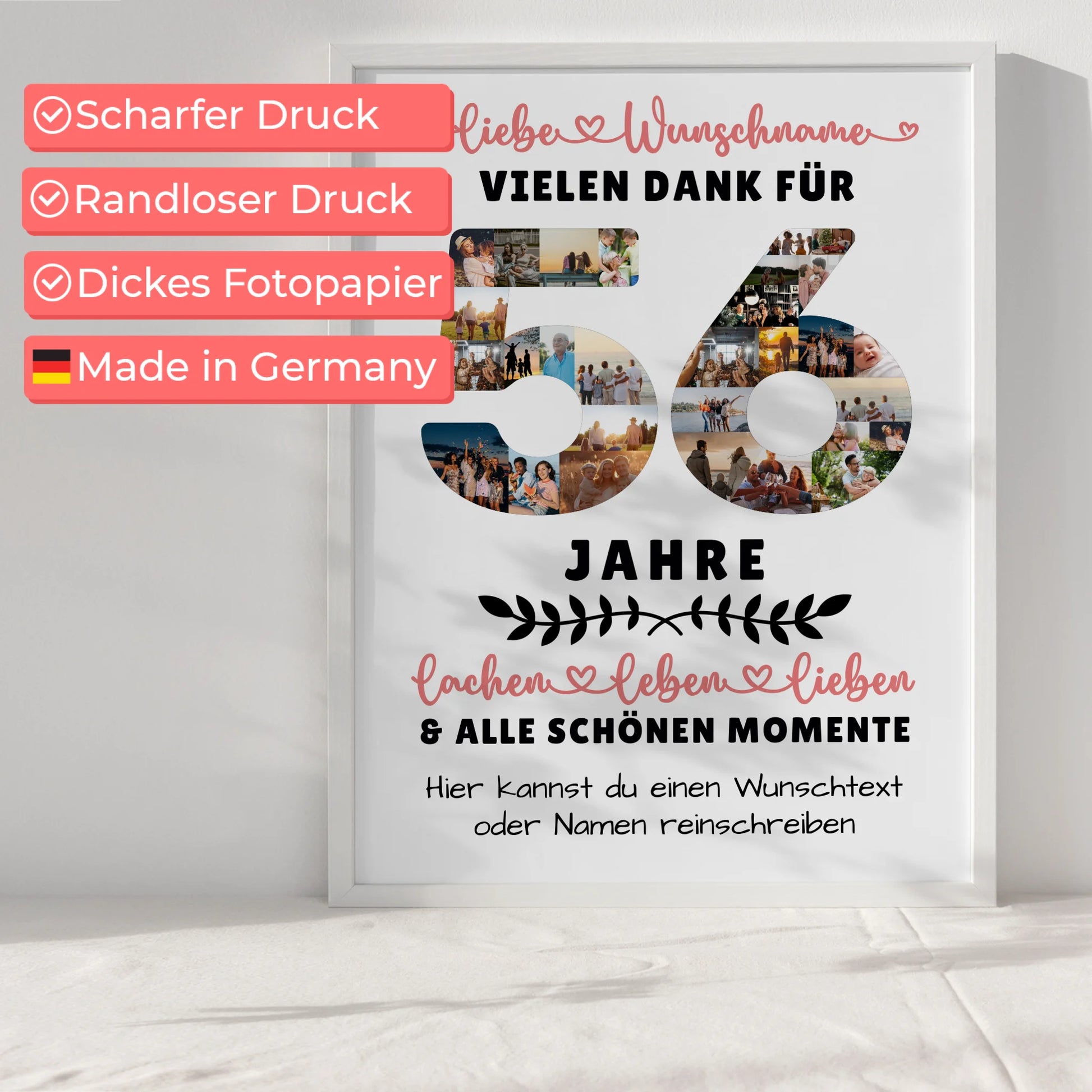 Mache den 56. Geburtstag unvergesslich! Bestelle jetzt dein persönliches Geschenk und überrasche deine Liebsten mit einem einzigartigen, von Herzen kommenden Präsent. Ein personalisiertes Poster ist das perfekte Geschenk, um Liebe und Wertschätzung auszudrücken.