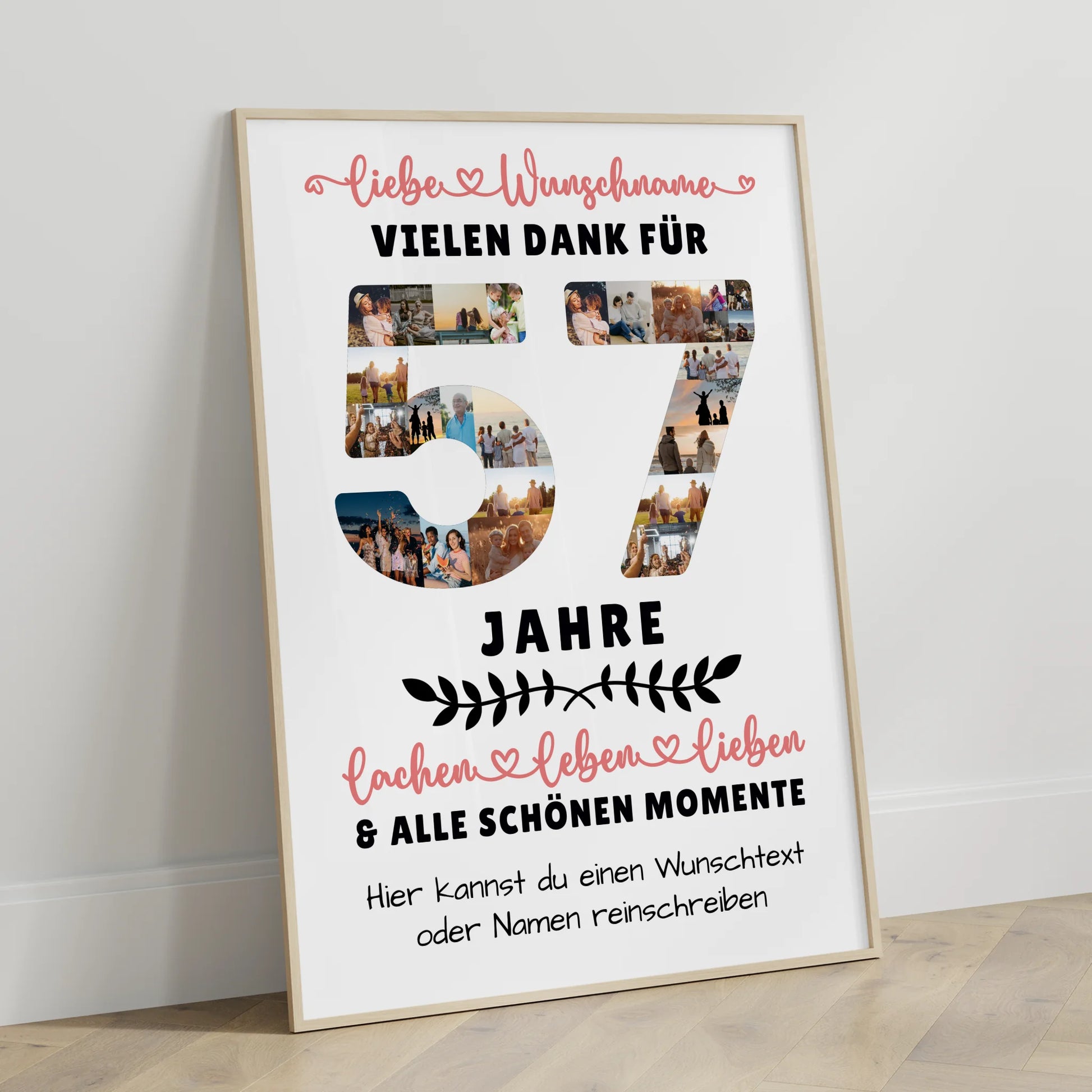 Mache den 57 Geburtstag zu einem unvergesslichen Ereignis! Gestalte jetzt dein persönliches Fotoposter für Schwester, Bruder, Mama oder Papa und schenke pure Freude. Ein einzigartiges Geschenk, das von Herzen kommt und lange in Erinnerung bleibt.