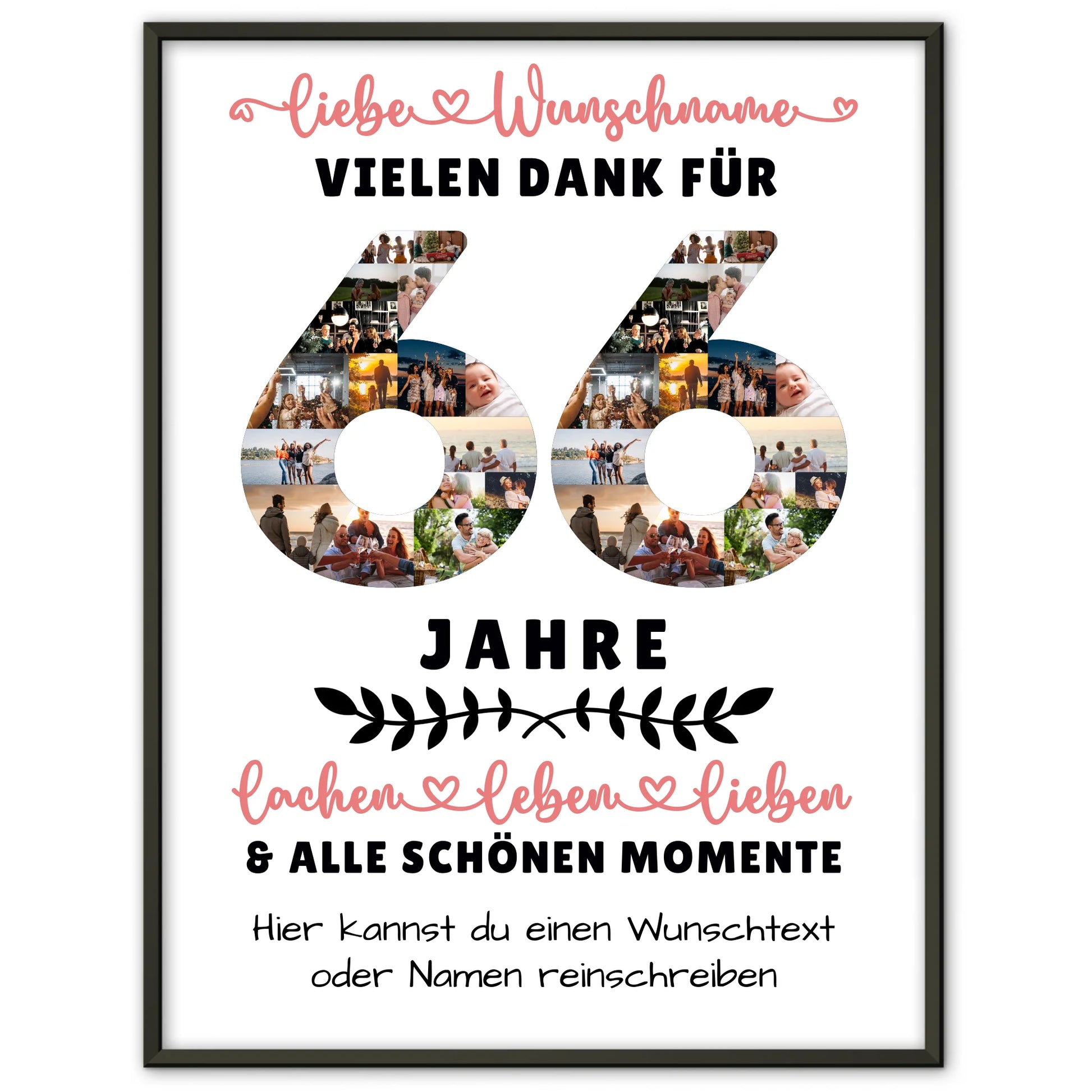Mache den 66 Geburtstag zu einem unvergesslichen Ereignis mit einem Geschenk, das Emotionen weckt und lange Freude bereitet. Bestelle jetzt dein Personalisiertes Poster und halte die schönsten Erinnerungen auf stilvolle Weise fest!