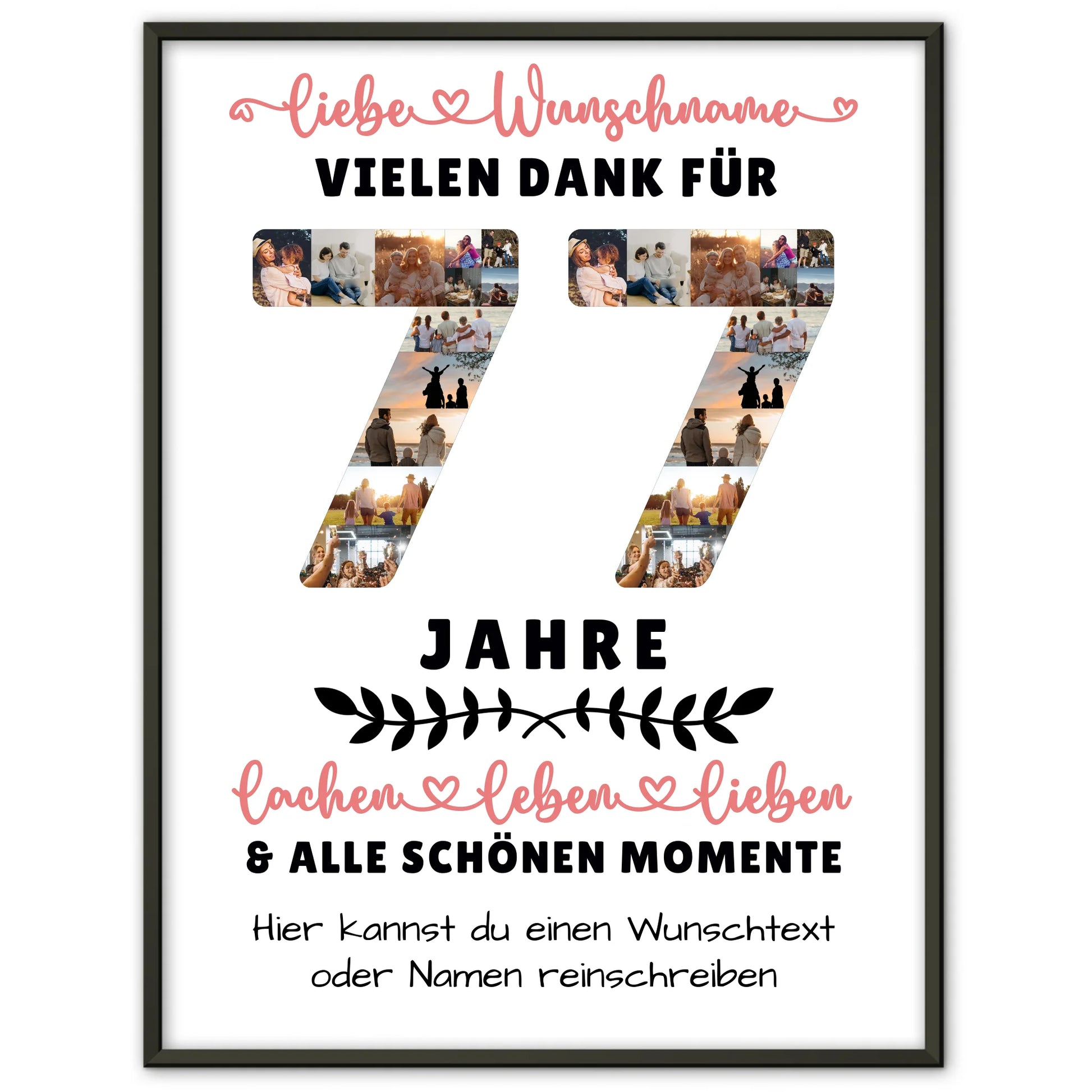Bestelle jetzt dein einzigartiges personalisiertes Poster und mache den 77 Geburtstag zu einem unvergesslichen Ereignis für deine Mama, deinen Papa, deine Oma oder deinen Opa!