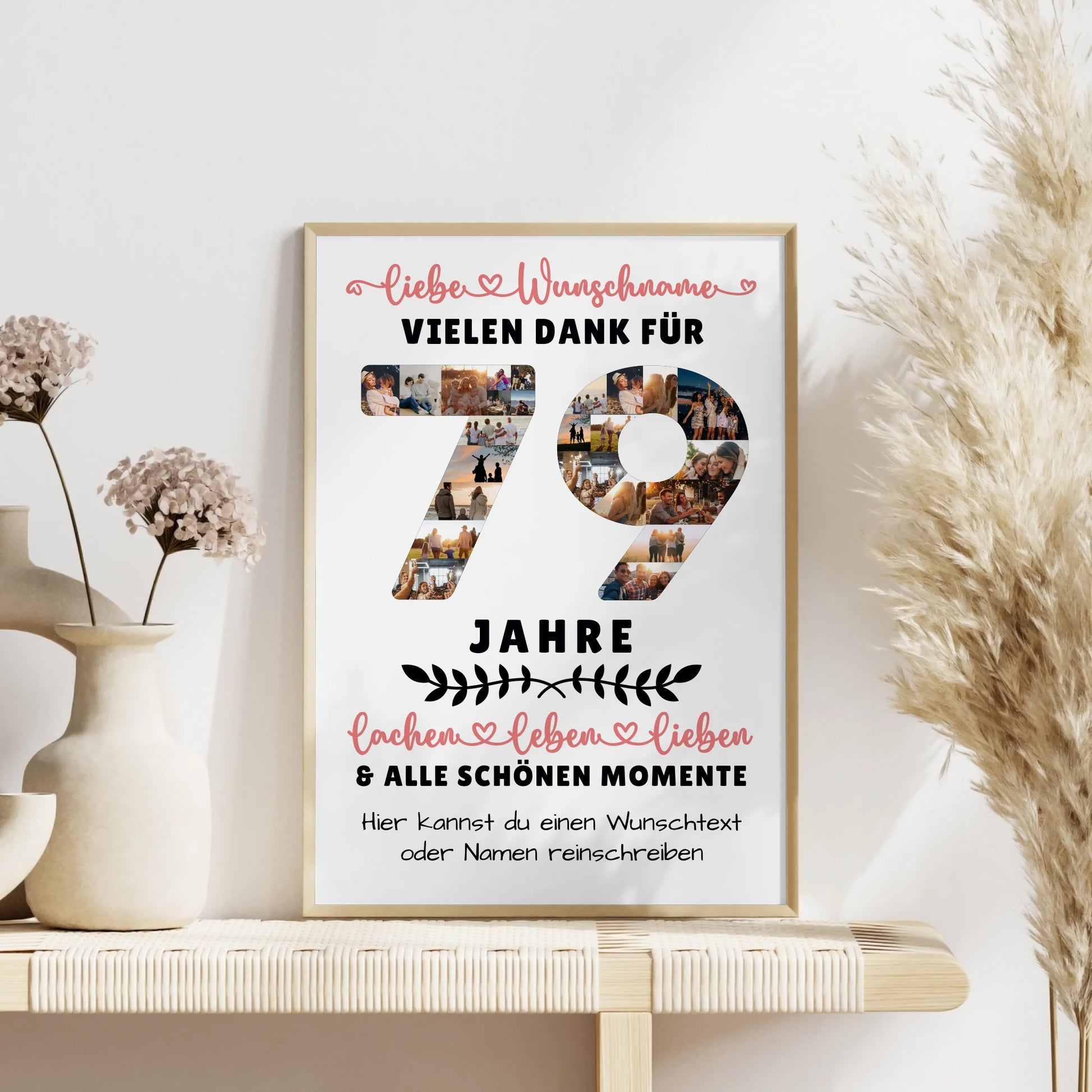 Mache den 79. Geburtstag zu einem unvergesslichen Ereignis mit einem Geschenk, das von Herzen kommt. Bestelle jetzt dein personalisiertes Poster für Mama, Papa, Oma oder Opa und halte wertvolle Erinnerungen für immer fest!