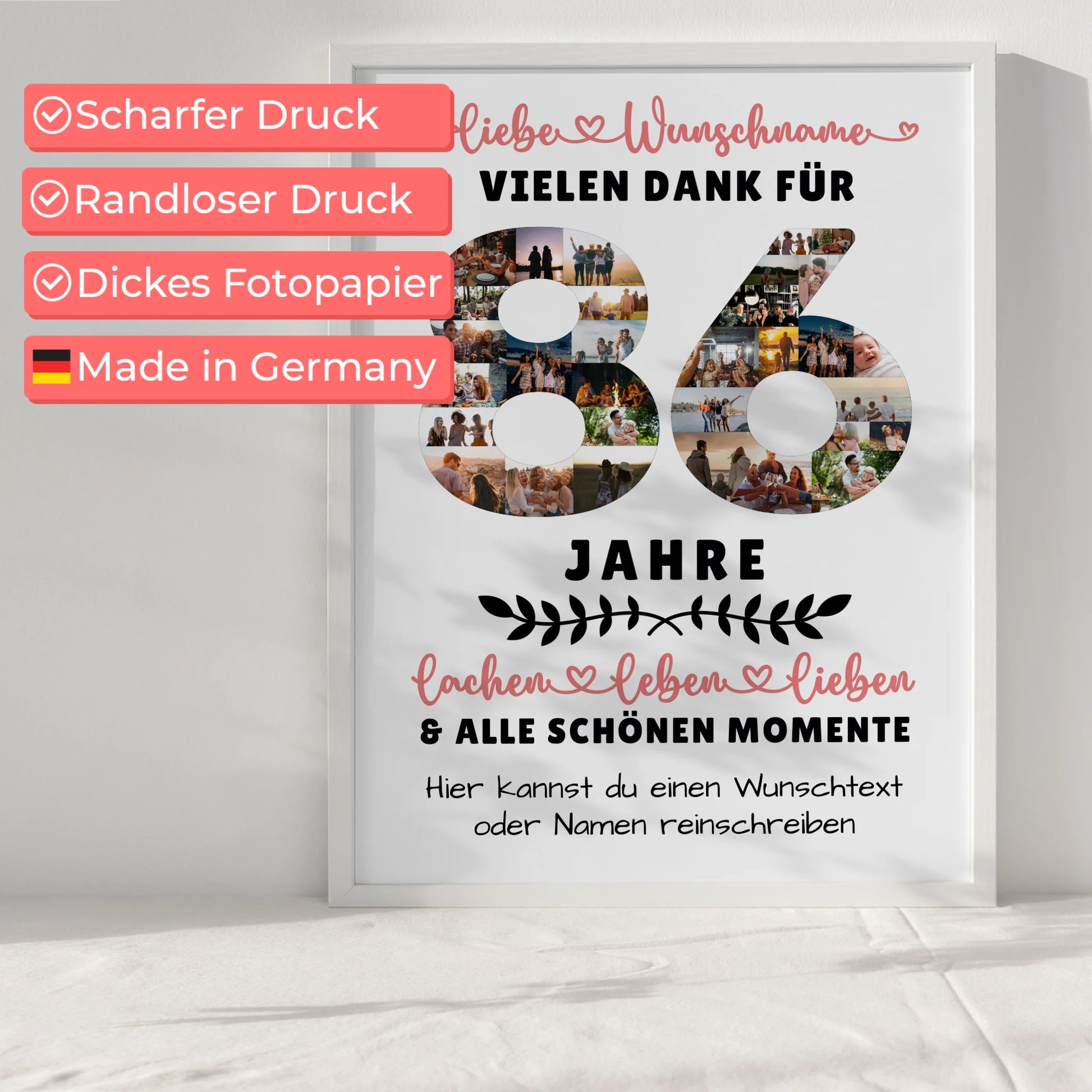 Überrasche deine Liebsten Für Oma Opa Papa & Mama mit diesem Highlight zum Geburtstag. Es ist nicht nur eine Dekoration, sondern ein täglicher Reminder an die schönen Momente im Leben. Bestelle jetzt dein Personalisiertes Poster und mache den 86. Geburtstag zu einem unvergesslichen Ereignis!