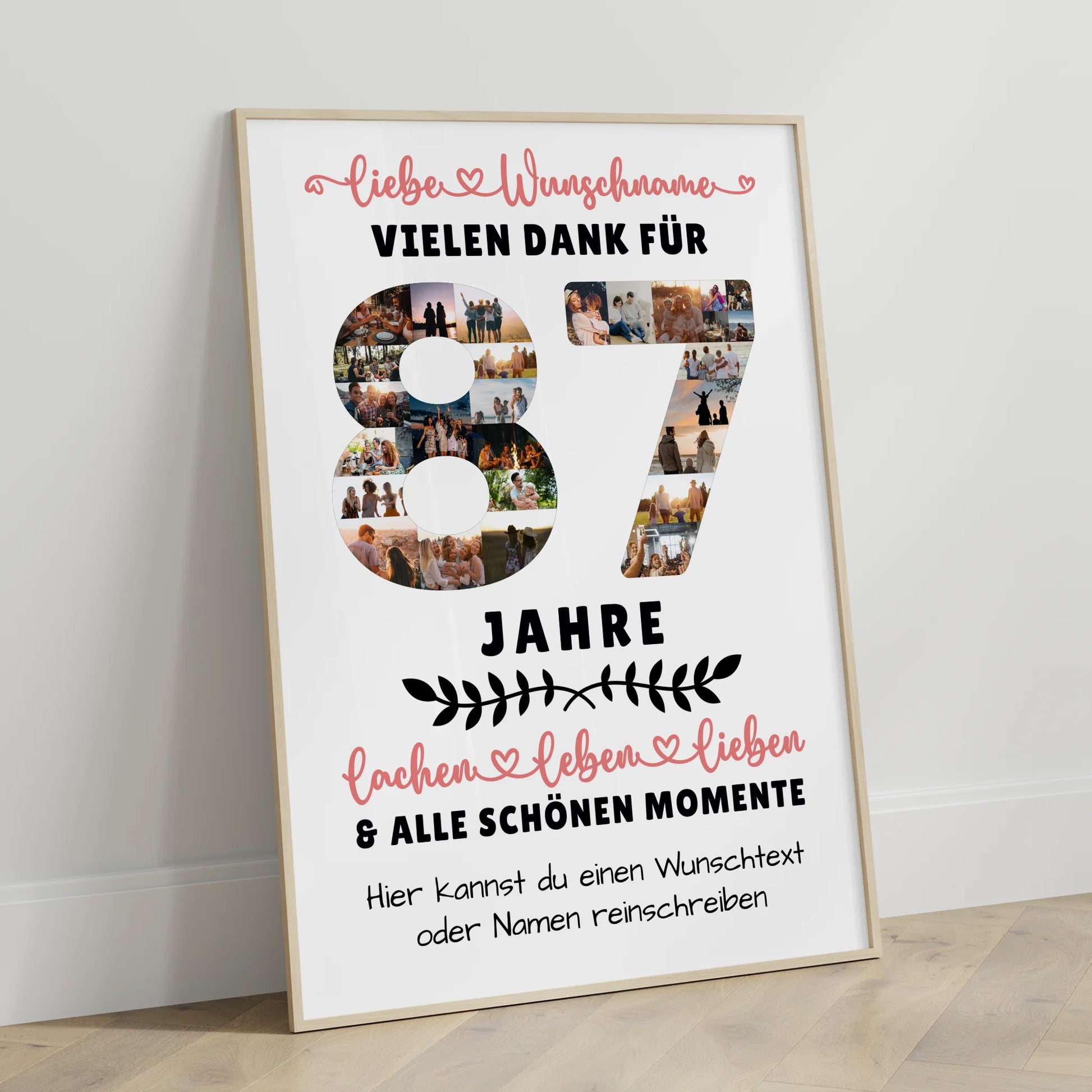 Feiere den 87. Geburtstag mit einem Geschenk, das Emotionen weckt und für immer in Erinnerung bleibt. Dieses personalisierte Poster ist eine wundervolle Hommage an ein erfülltes Leben und die perfekte Überraschung für diesen besonderen Anlass. Gestalte jetzt dein Unikat und sorge für strahlende Augen!
