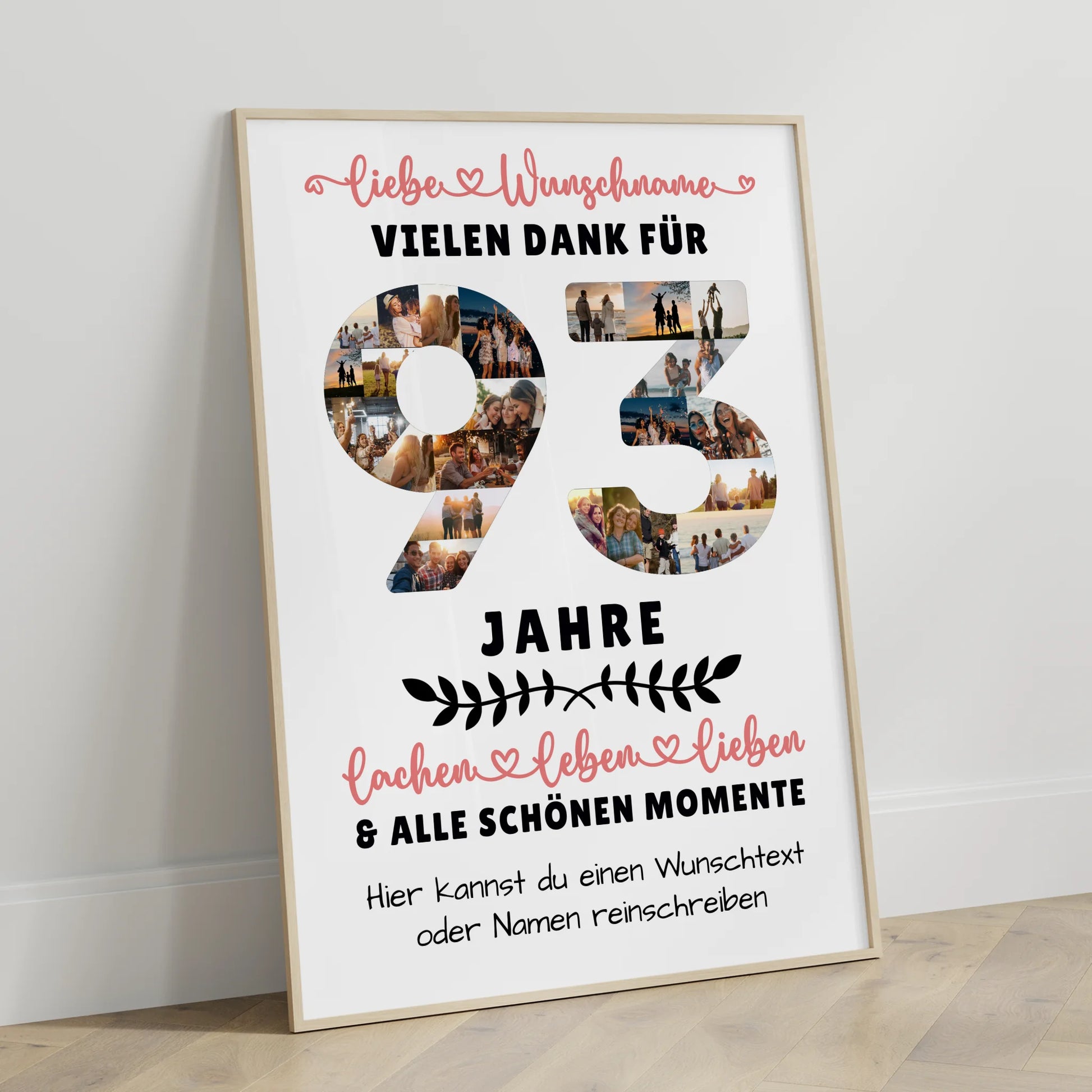 Bestelle jetzt dein Personalisiertes Poster zum 93 Geburtstag und schenke Freude, die von Herzen kommt. Ein wirklich persönliches Geschenk, das Oma, Opa, Mama und Papa begeistern wird!