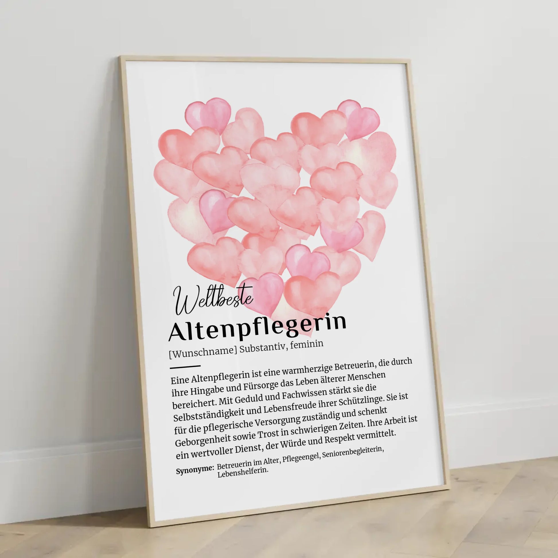 Personalisiertes Poster Altenpflegerin mit Namen Definitionsposter
