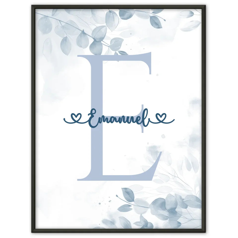 Personalisiertes Poster Anfangsbuchstaben Buchstabe E Blau für Jungen