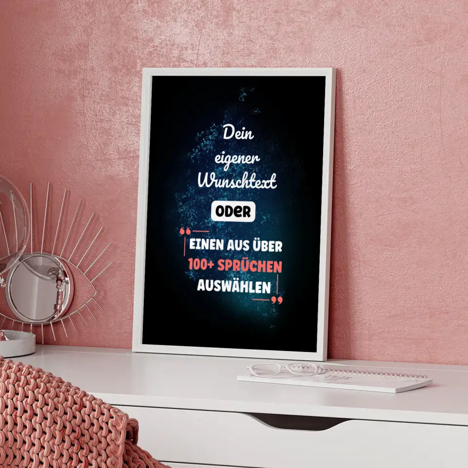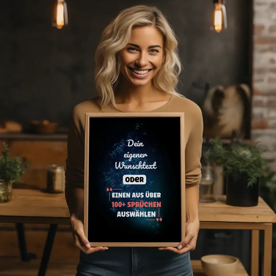 Du kannst bei diesem schönen Design Eigener Spruch, Hintergrundbild & Wunschtext personalisieren.