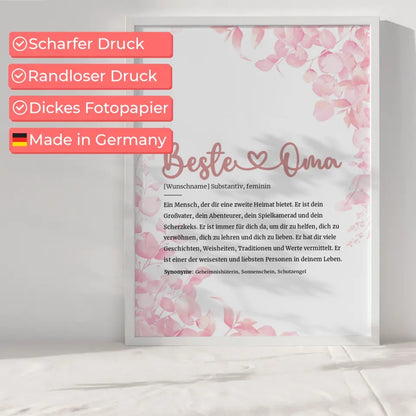 Personalisiertes Poster Definition Beste Oma Herz mit Name – Ein einzigartiges Geschenk!