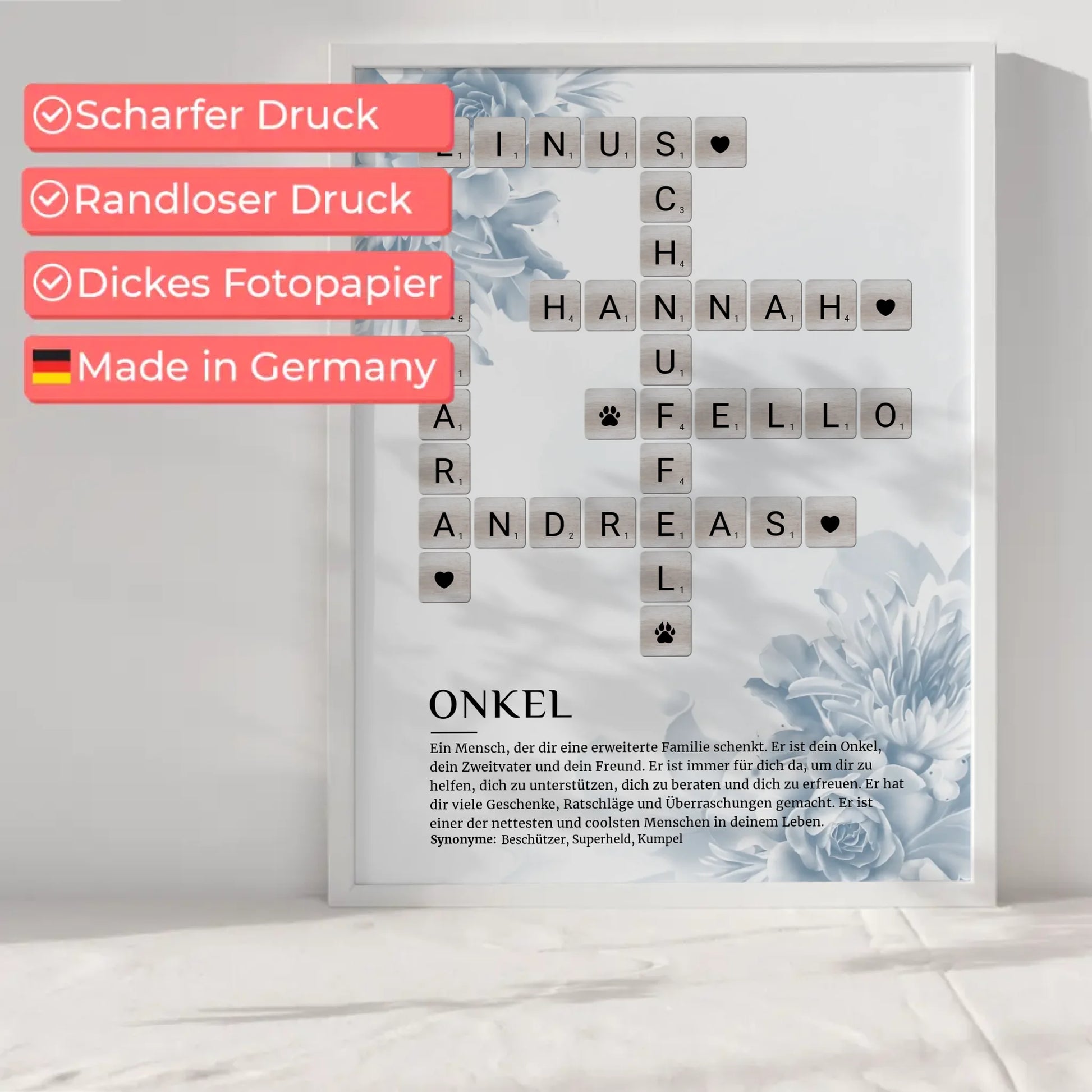 Personalisiertes Poster Definition Onkel Kreuzworträtsel Geschenk