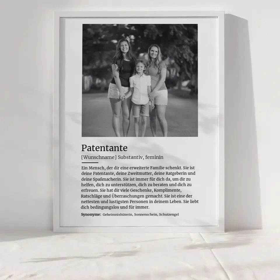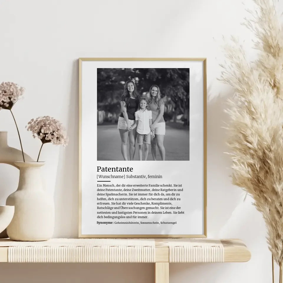 Du bist auf der Suche nach einem schönen tollen Geschenk? Dann ist unser Personalisiertes Poster Definition Patentante Mit Name und Foto das perfekte personalisierbare Geschenk.