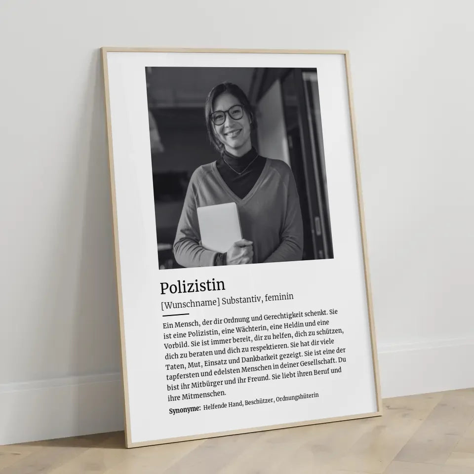 Personalisiertes Poster Definition Polizistin Mit Name und Foto