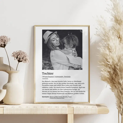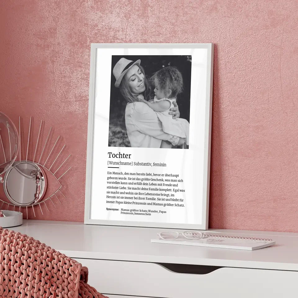 Du magst einzigartige Geschenke? Dann ist unser Personalisiertes Poster Definition Tochter Mit Name und Foto das perfekte personalisierbare Geschenk.