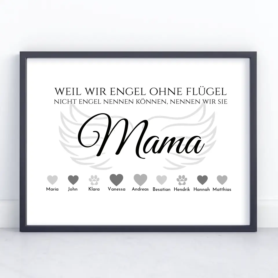 Du suchst ein tolles Geschenk? Dann ist Unser Personalisiertes Poster Engel ohne Flügel Mama ein tolles personalisiertes Geschenk.