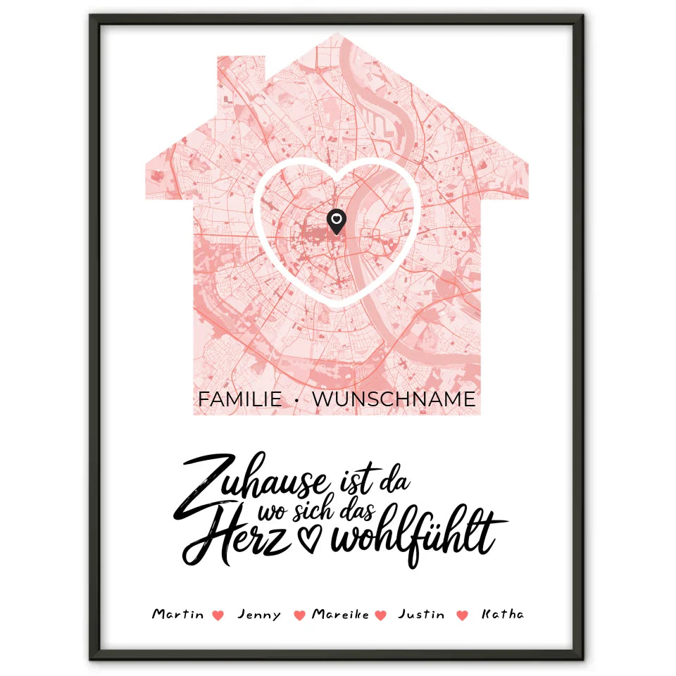 Entdecke das personalisierte Poster Familie Stadtkarte Das Herz Wohlfühlt mit Nachname