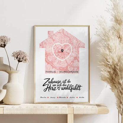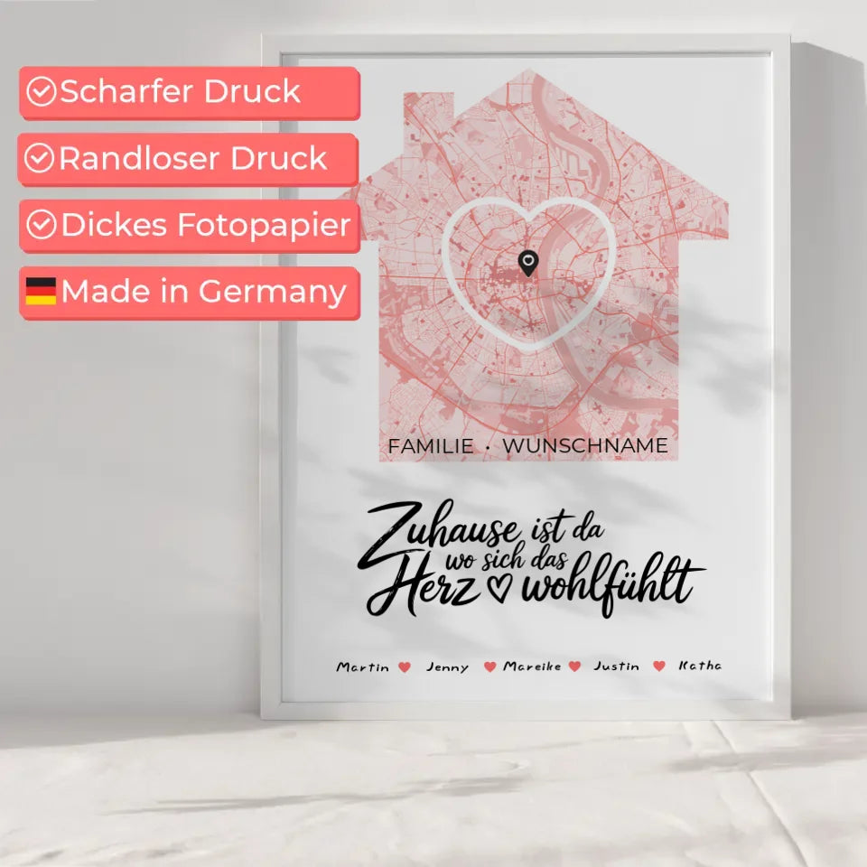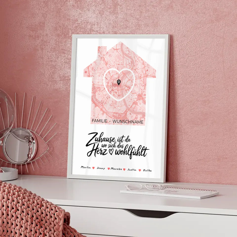 Personalisiertes Poster Familie Stadtkarte Das Herz Wohlfühlt mit Nachname