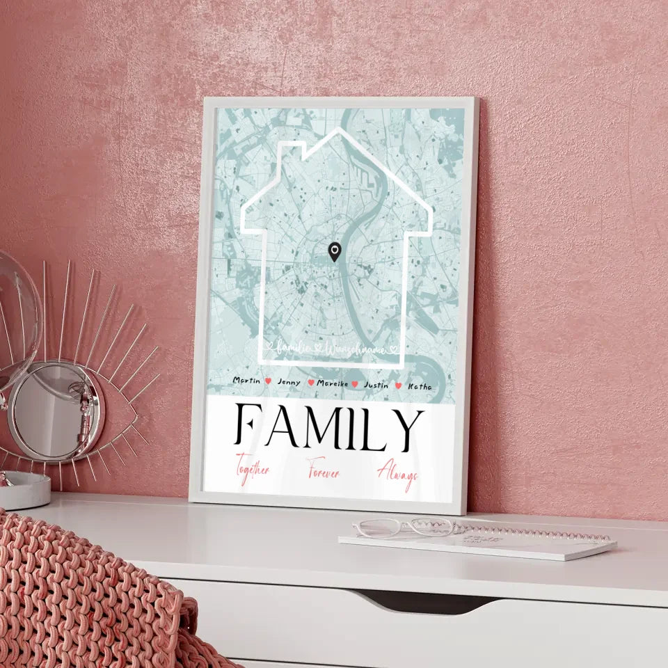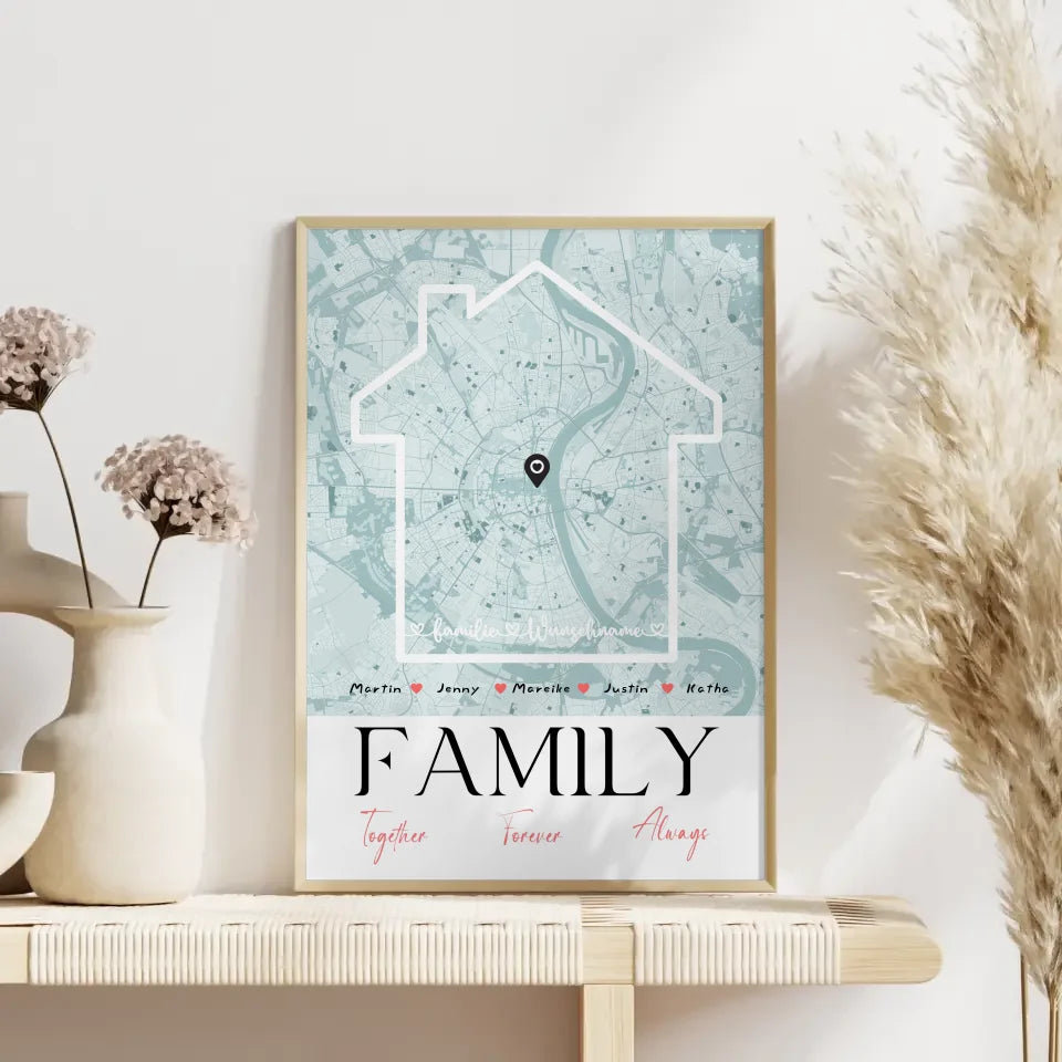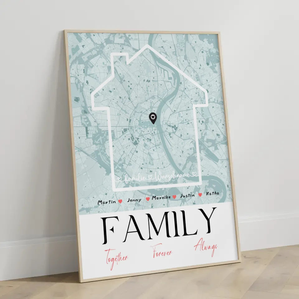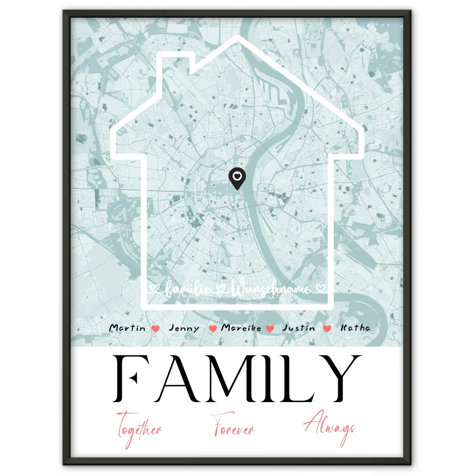 Personalisiertes Poster Familie Stadtkarte Family Together mit Nachname