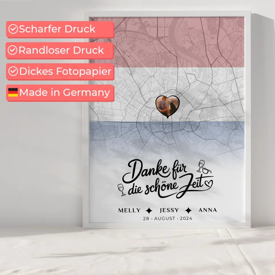 Personalisiertes Poster Freundinnen Stadtkarte Foto Niederlande Danke Für Die Schöne Zeit