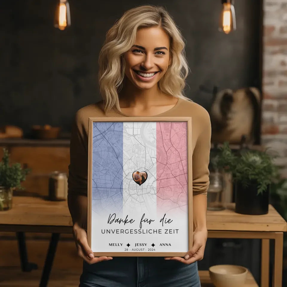 Personalisiertes Poster für Freundinnen Stadtkarte Foto Frankreich Danke für die Unvergessliche Zeit