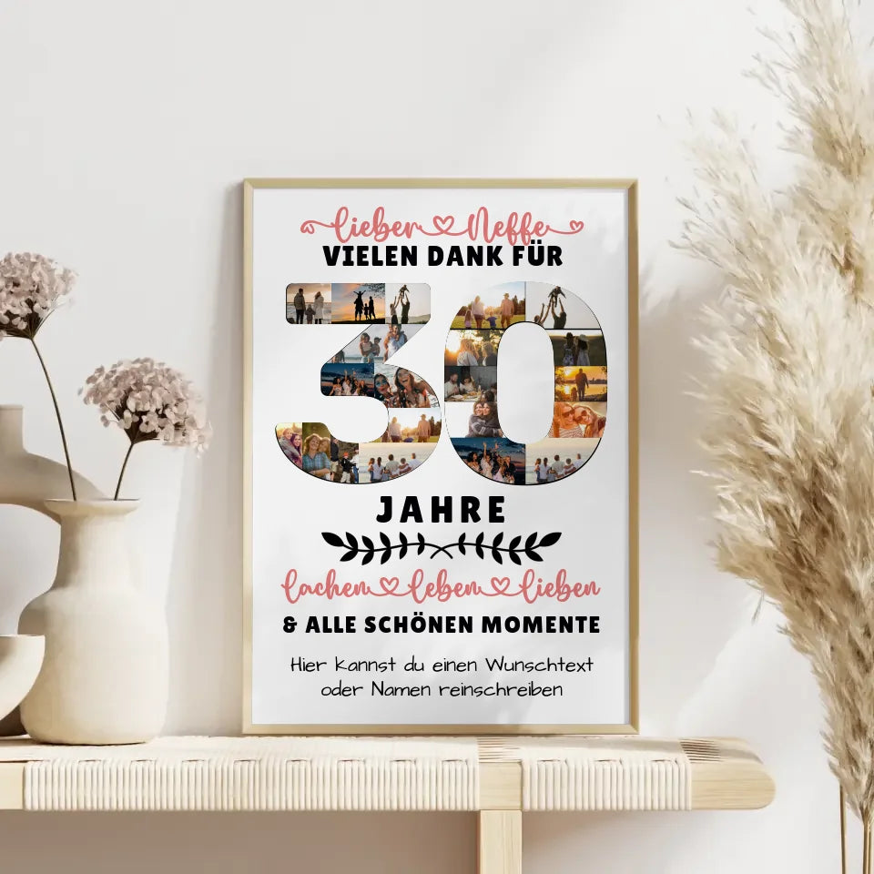 Personalisiertes Poster für Neffe zum 30 Geburtstag mit Fotos und Wunschtext