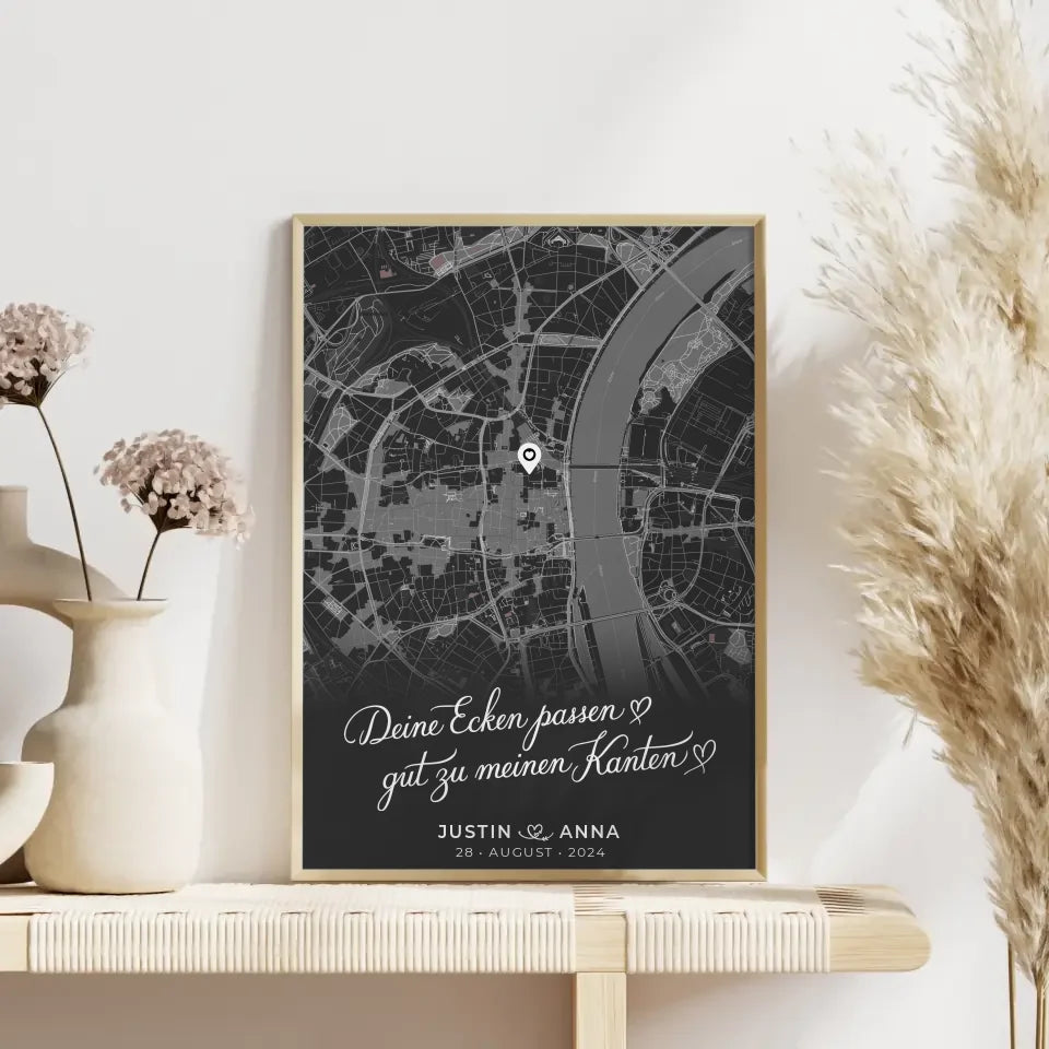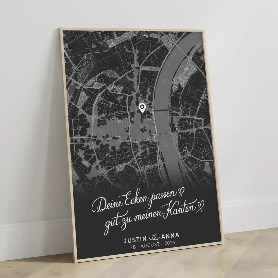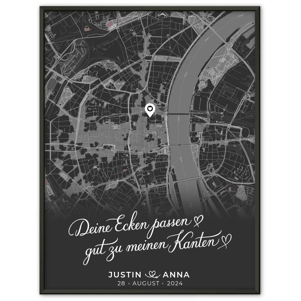 Personalisiertes Poster für Paare Dunkelgrau Stadtkarte Deine Ecken