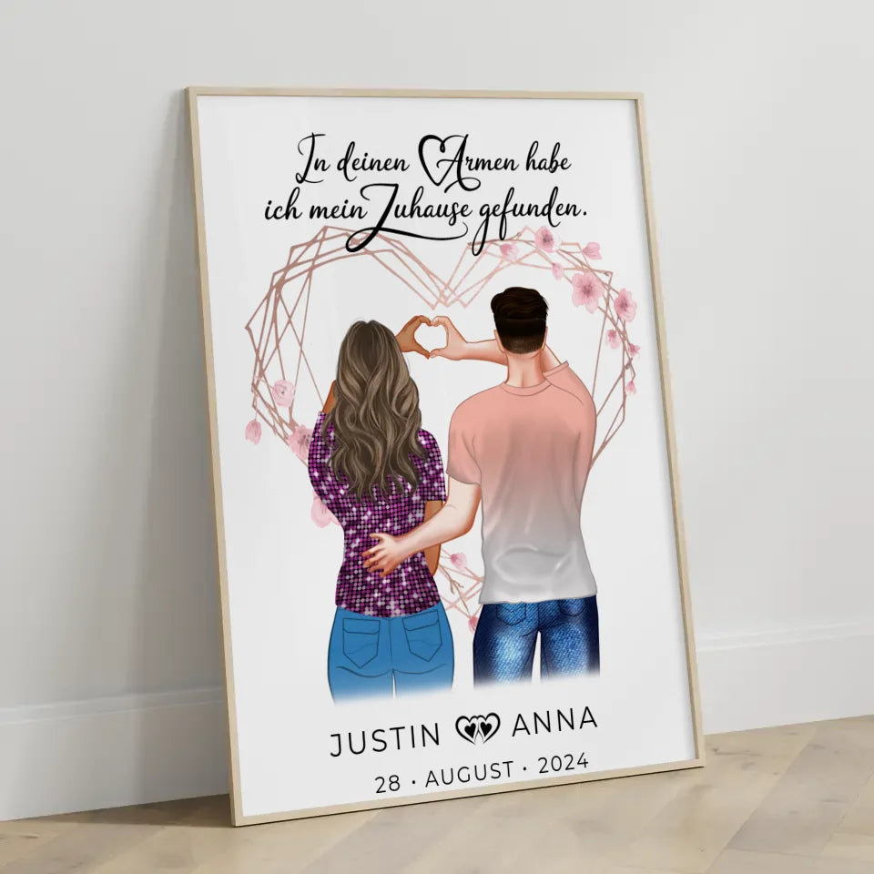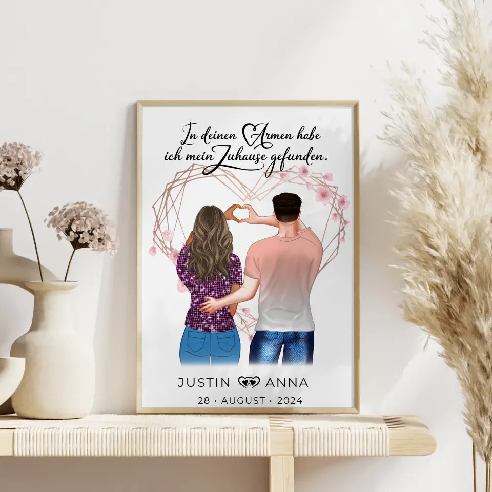 Personalisiertes Poster für Paare: Figuren In Deinen Armen Habe Ich Mein Zuhause Gefunden