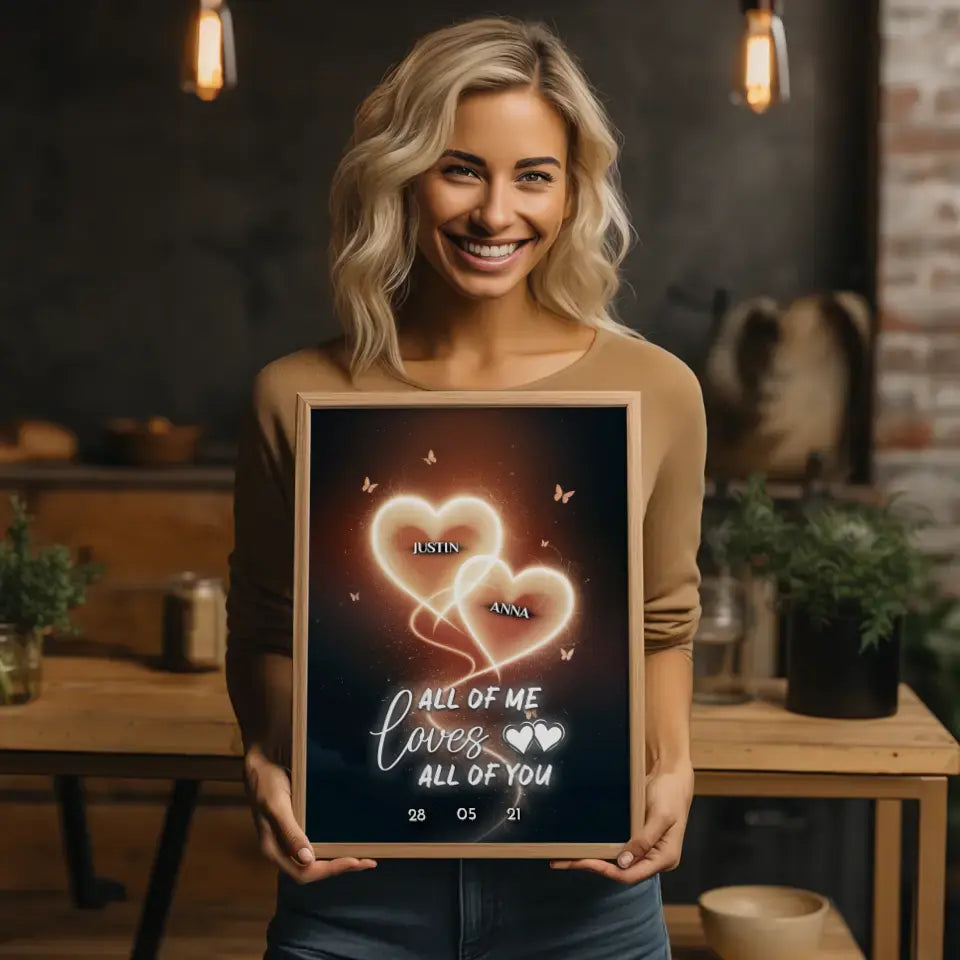 Du suchst ein tolles Geschenk? Dann ist Unser Personalisiertes Poster für Paare Mit Namen & Datum Leuchtherz ein wirklich einzigartiges personalisiertes Geschenk.