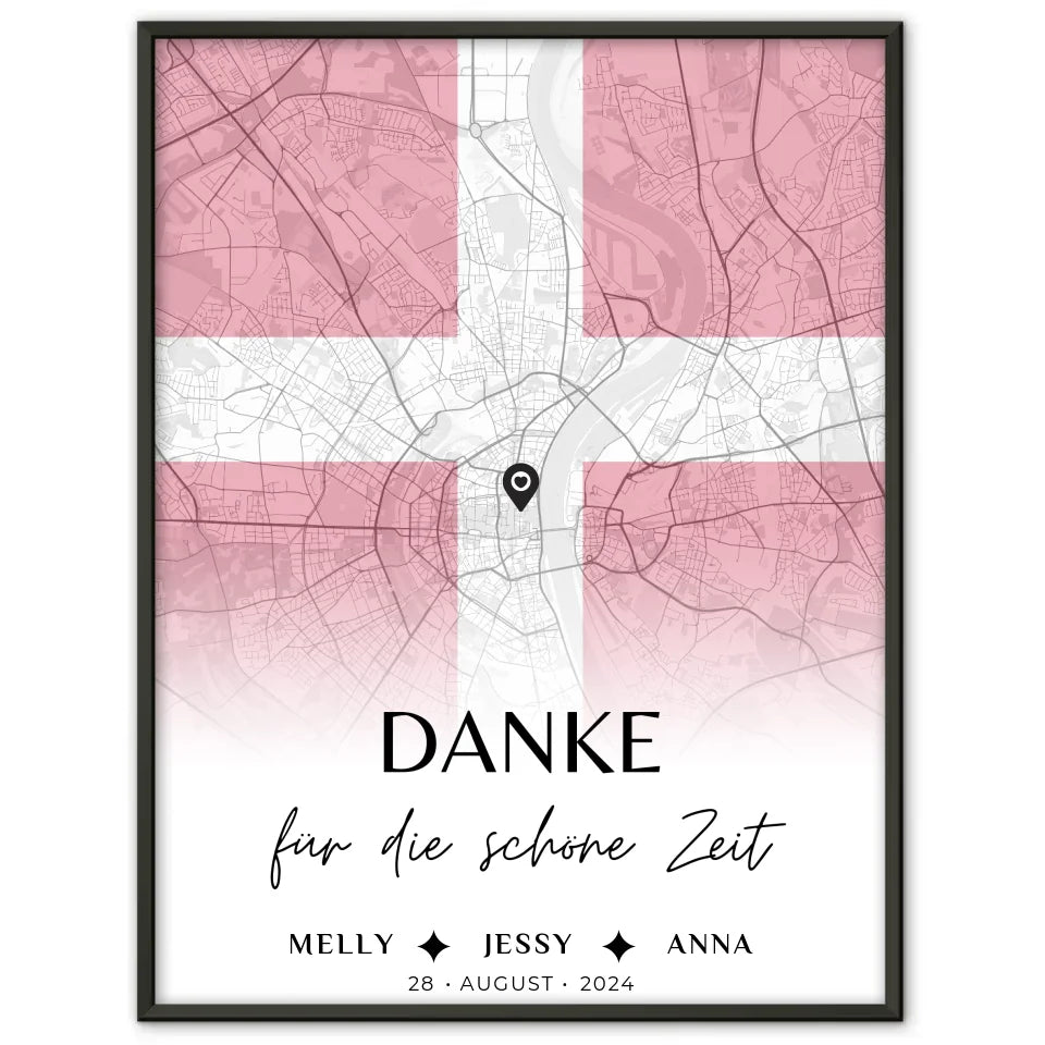 Bestelle jetzt das personalisiertes Poster für Schwester Stadtkarte Dänemark Urlaub Danke Für Die Schöne Zeit und mache ihr eine Freude, die sie nie vergessen wird!