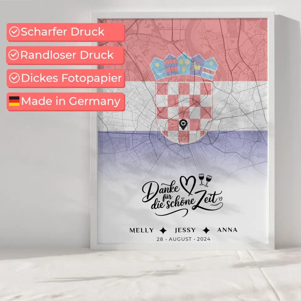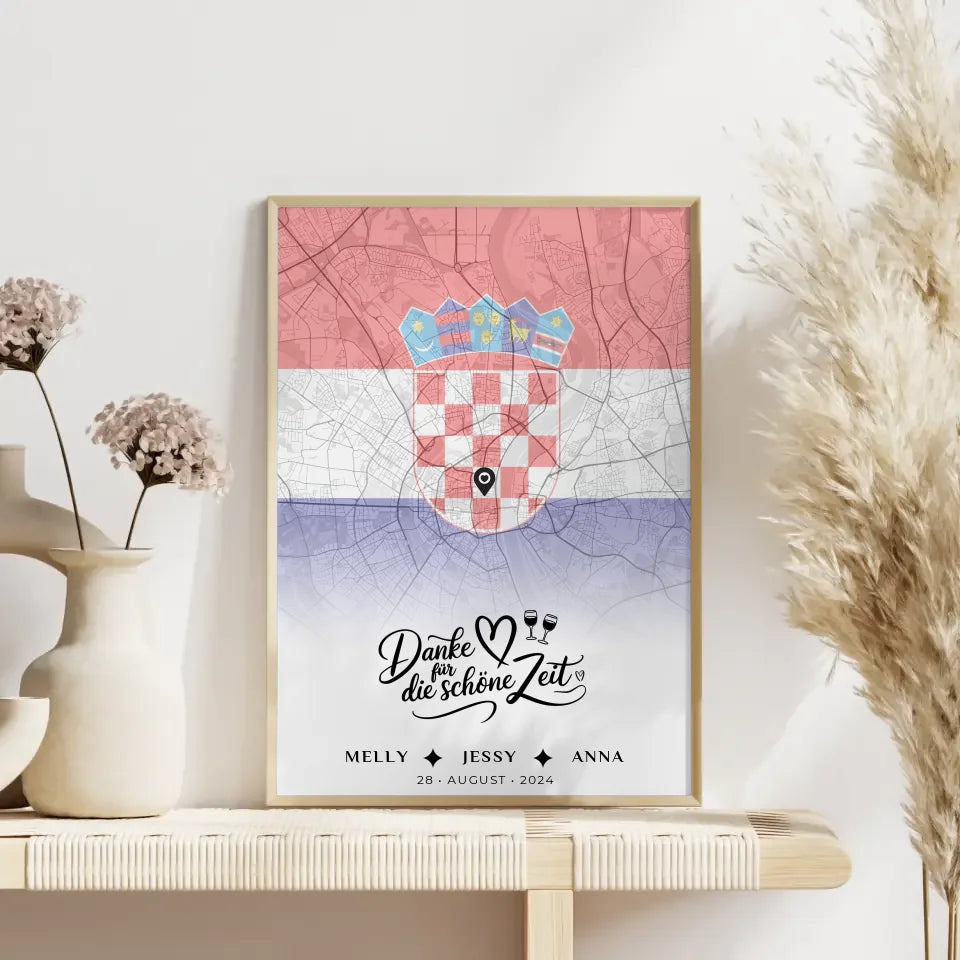 Personalisiertes Poster für Schwester Stadtkarte Kroatien Danke für die schöne Zeit