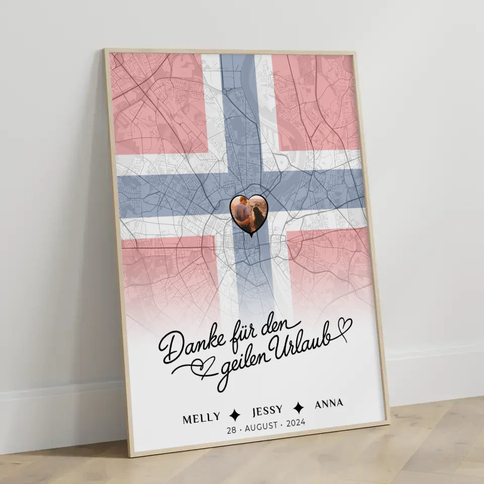 Schaffe unvergessliche Erinnerungen und zeige deiner Schwester, wie viel sie dir bedeutet - mit einem personalisierten Poster voller Emotionen. Bestelle jetzt dein Poster mit der Stadtkarte von Norwegen und halte den 'Danke Für Den Geilen Urlaub' -Moment für immer fest!