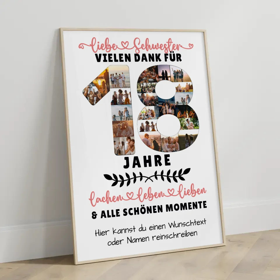 Personalisiertes Poster für Schwester zum 18 Geburtstag mit Fotos Wunschtext