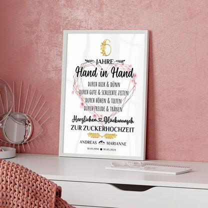 Personalisiertes Poster Geschenk 6 Hochzeitstag zur Zuckerhochzeit Hand in Hand mit Namen
