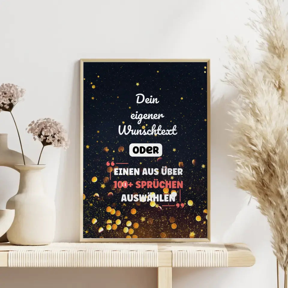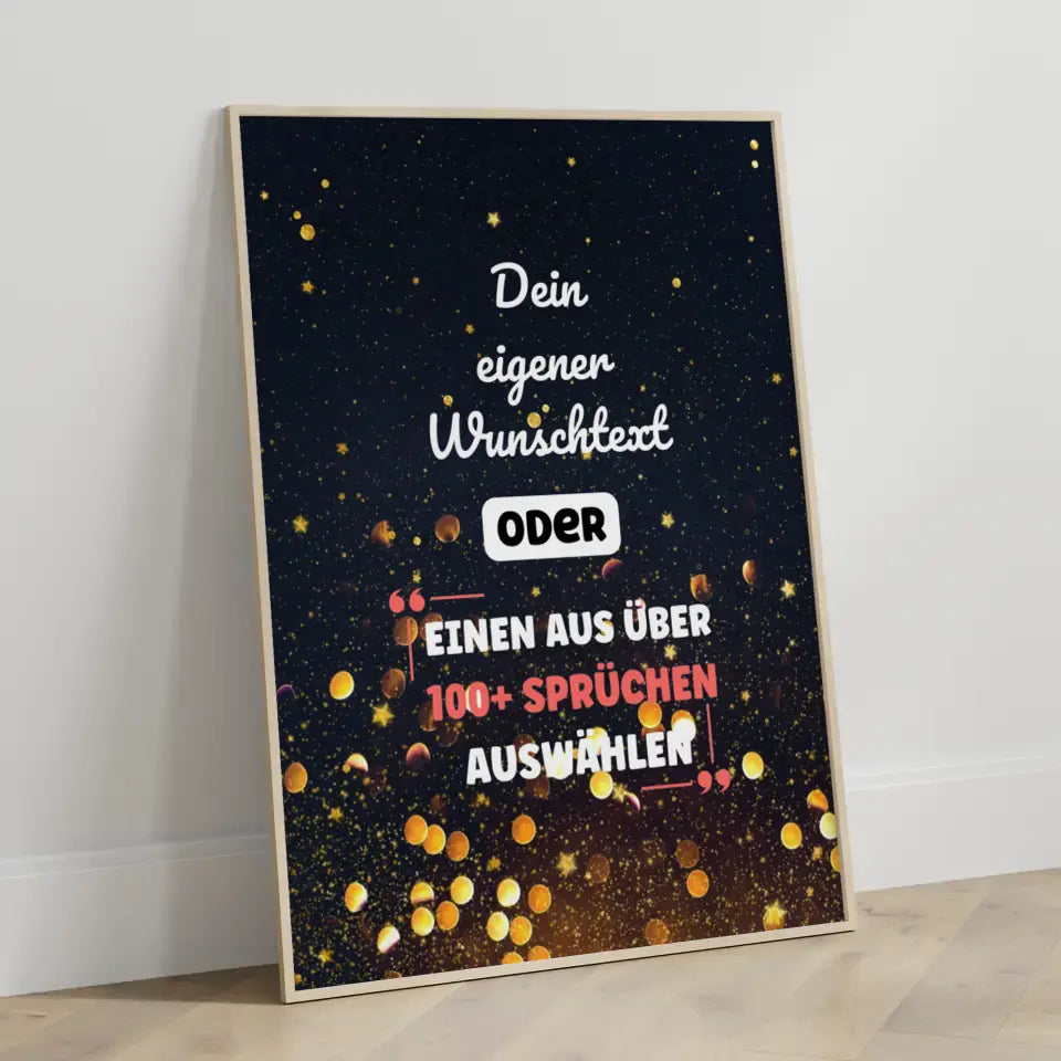 Personalisiertes Poster goldene Sterne mit Wunschtext & Hintergründen