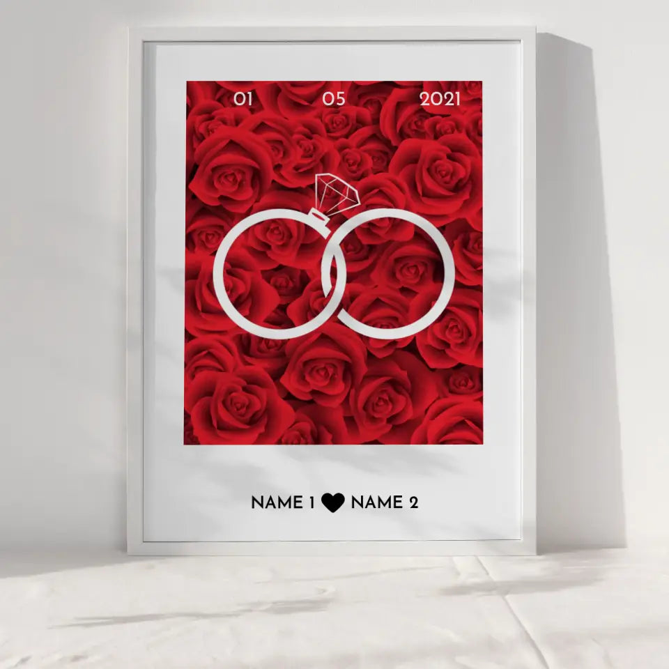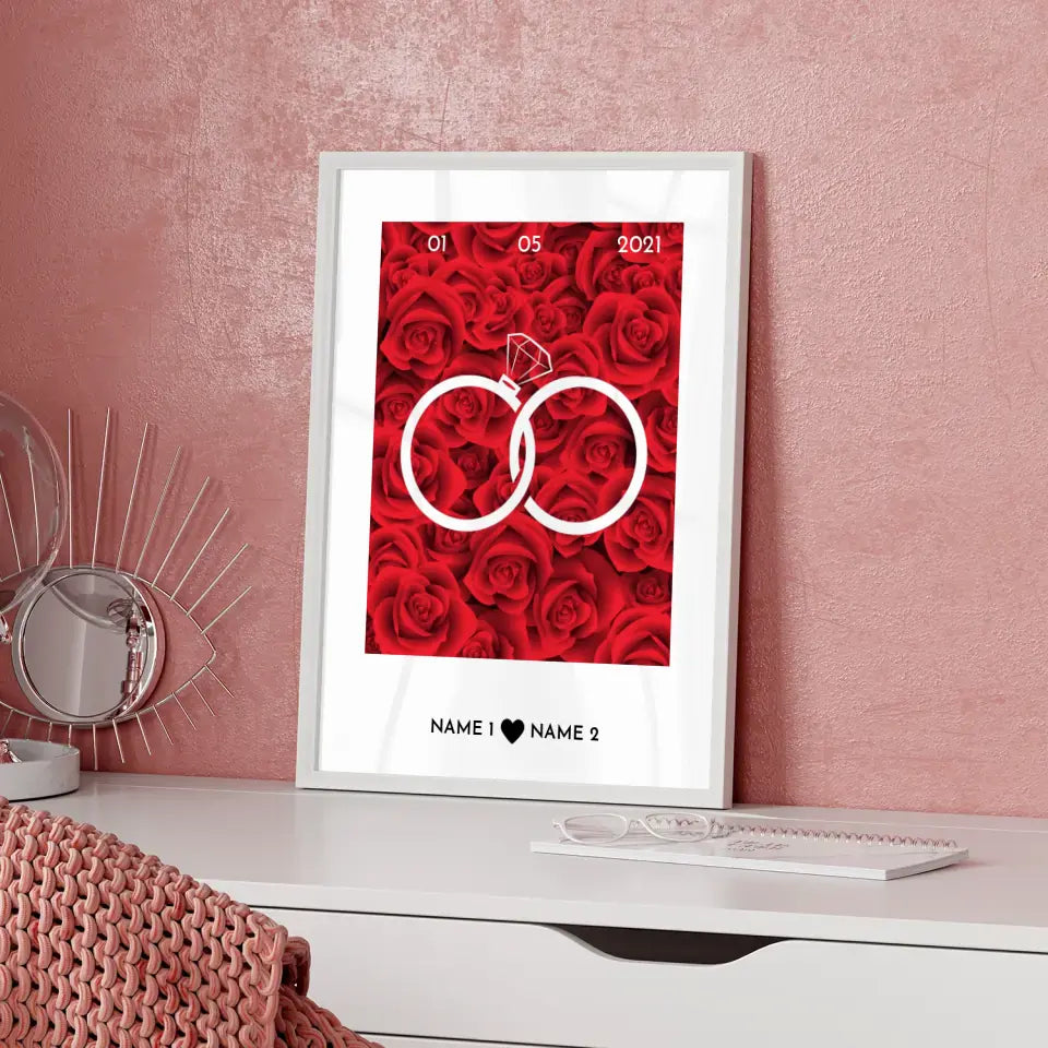 Personalisiertes Poster Liebe Eheringe Rosen Mit Datum & Namen