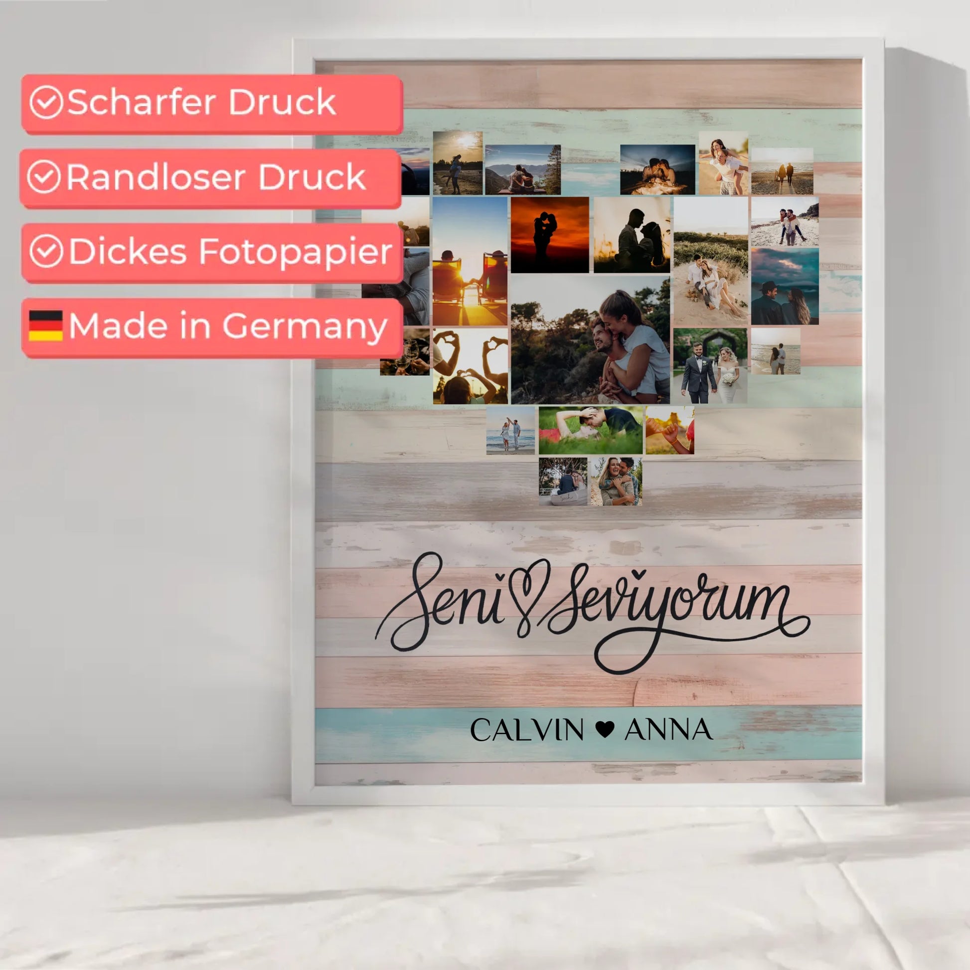 Personalisiertes Poster Liebe Fotocollage Seni Seviyorum