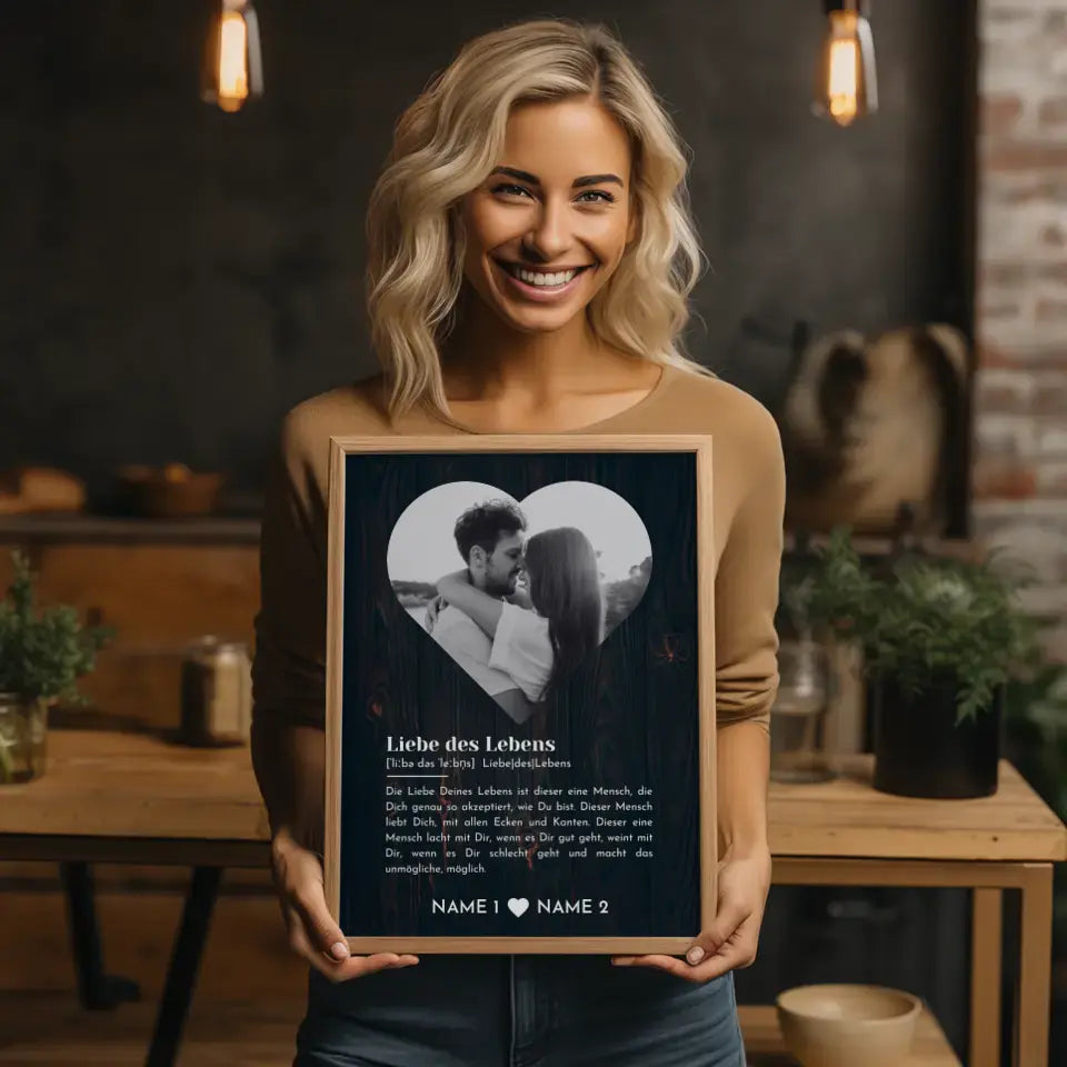 Personalisiertes Poster Liebe Herz Foto Definition Holz Optik
