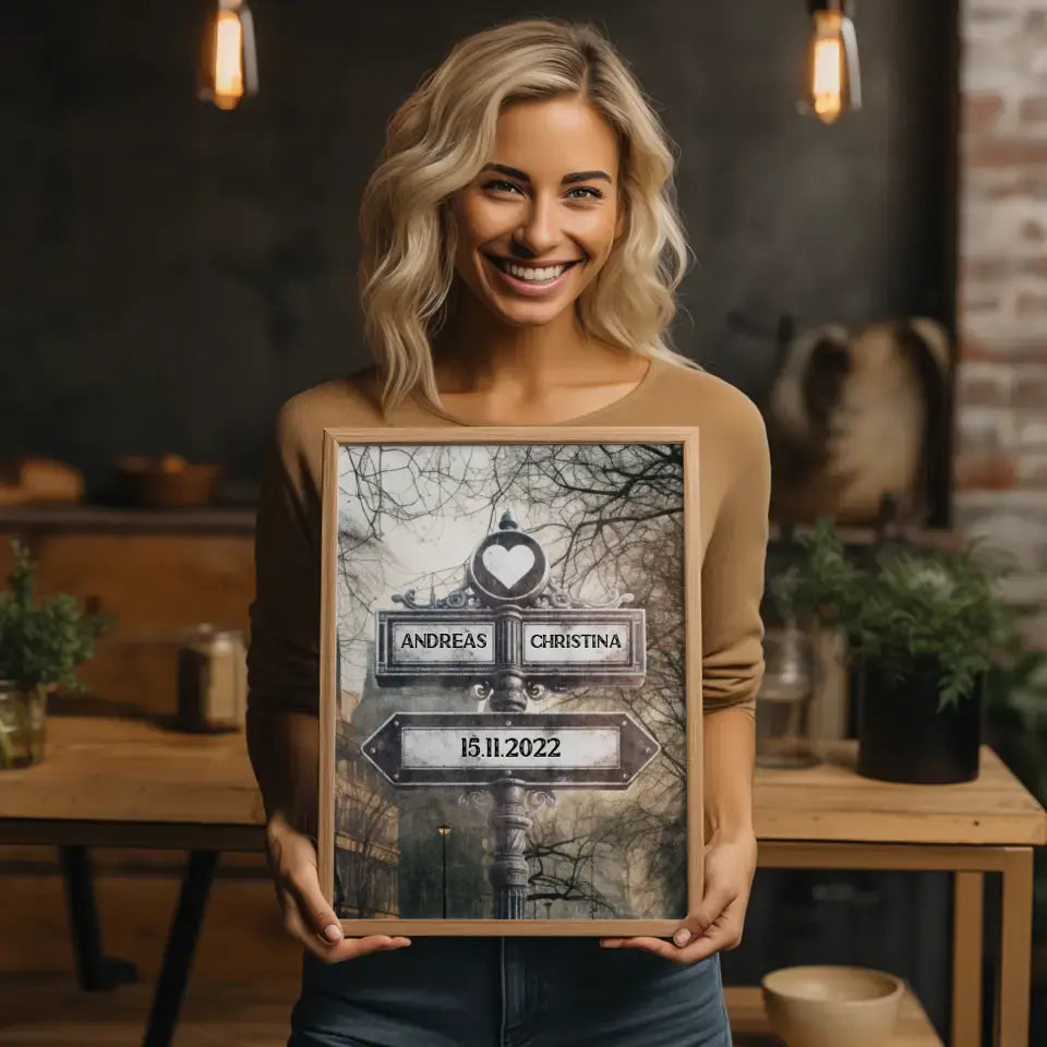 Du möchtest mal wieder etwas einzigartiges verschenken? unser Personalisiertes Poster Liebe Wegweiser London Vintage für Paare das perfekte personalisierbare Geschenk.