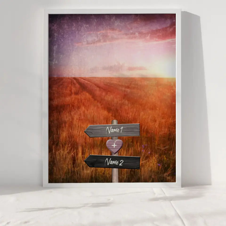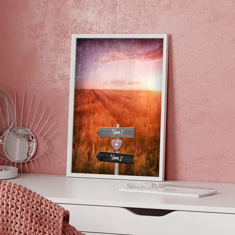 Unser Personalisiertes Poster Liebe Wegweiser mit Herz Weide Mit Namen