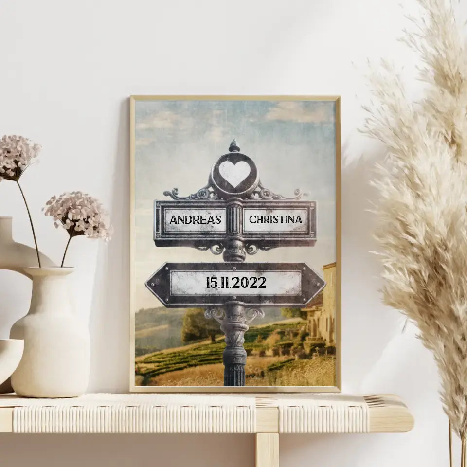 Unser Personalisiertes Poster Liebe Wegweiser Provence Vintage für Paare