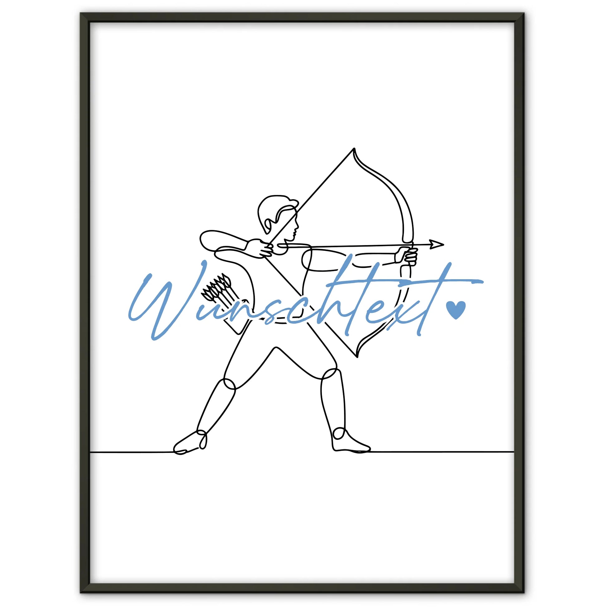 Personalisiertes Poster Lineart Bogenschießen Geschenk Sohn & Bruder für Bogenschütze Bogenschützin Archery
