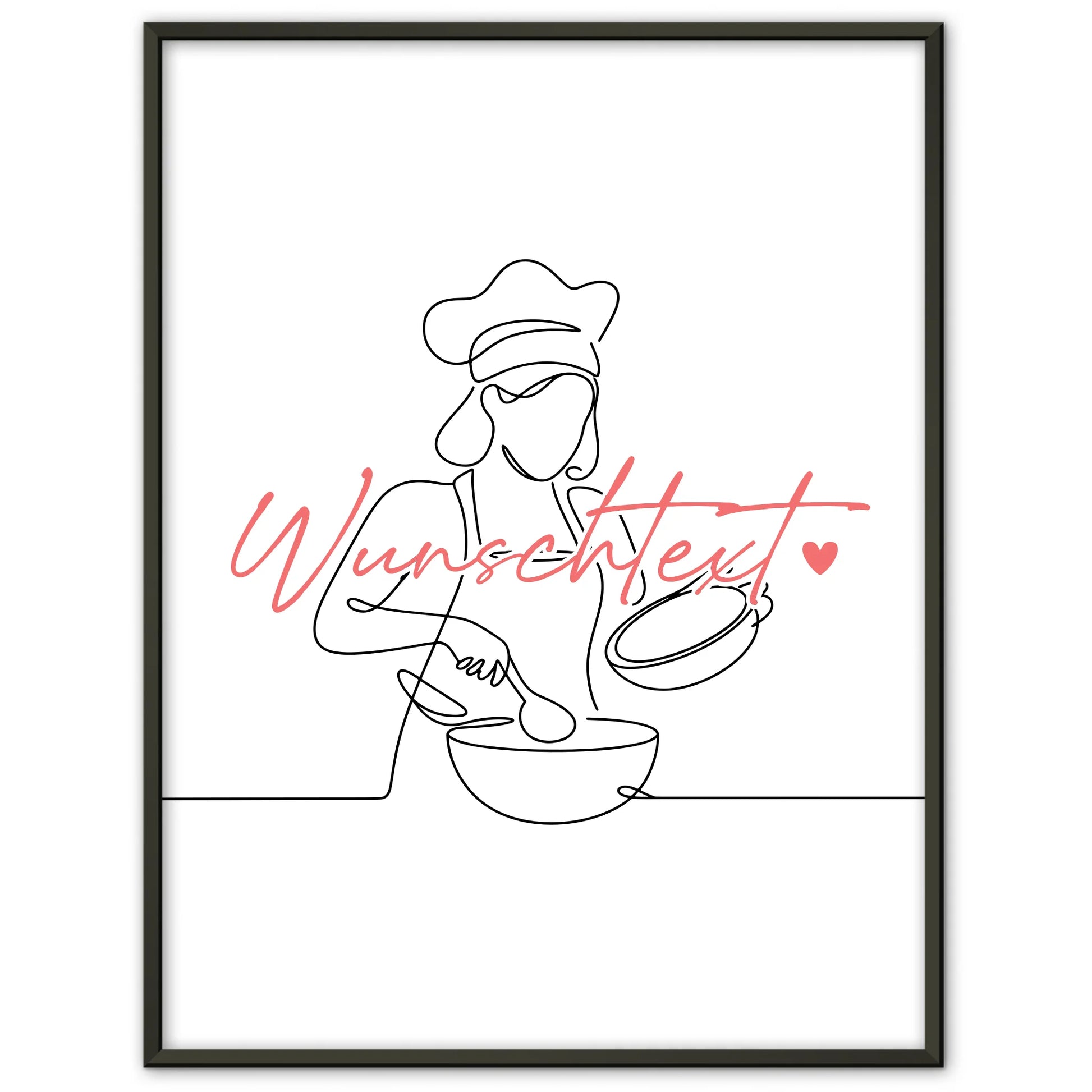 Gestalte dein Personalisiertes Poster Lineart Kochen Geschenk Tochter & Schwester für Koch Köchin Cook ganz nach deinen Wünschen: