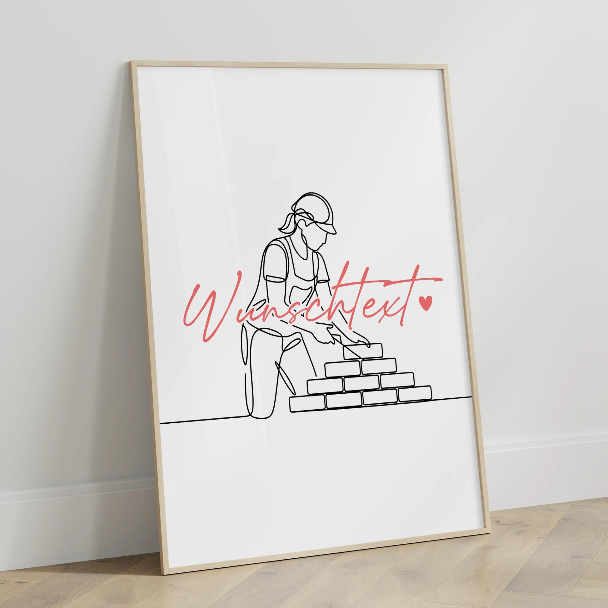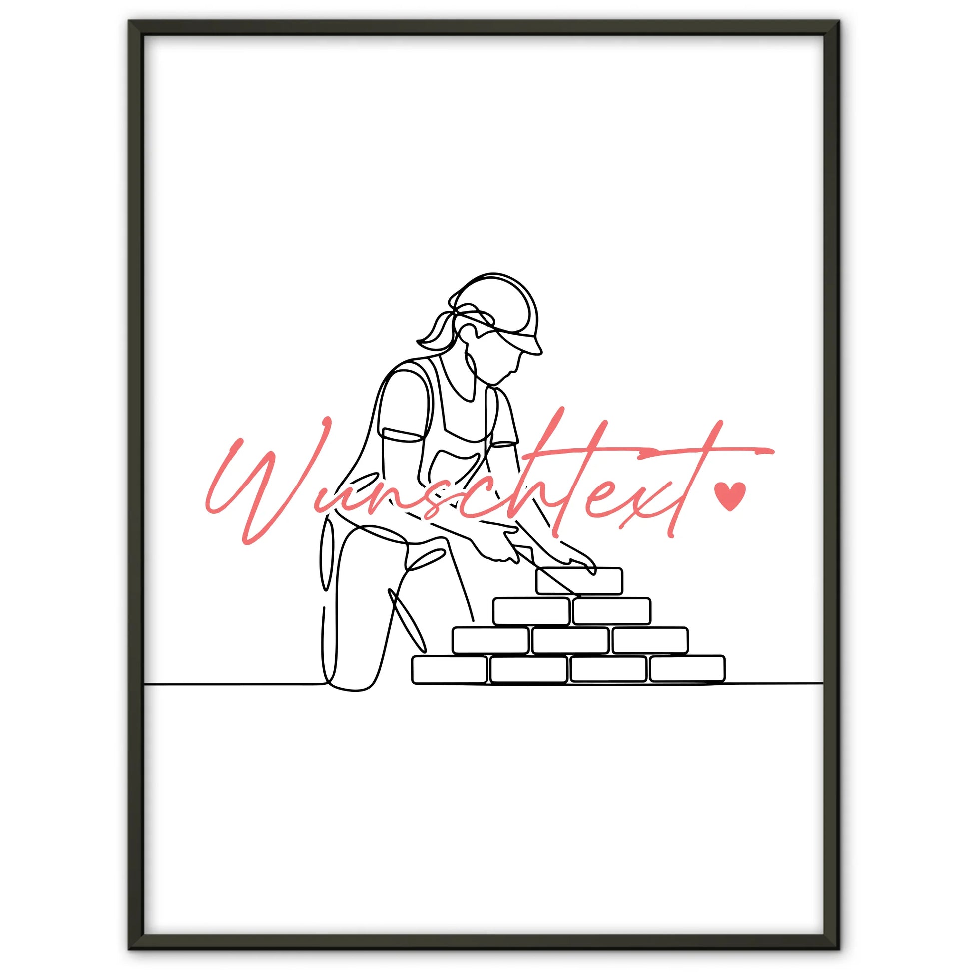 Personalisiertes Poster Lineart Maurer Geschenk Tochter & Schwester für Maurer Maurerin Bricklayer