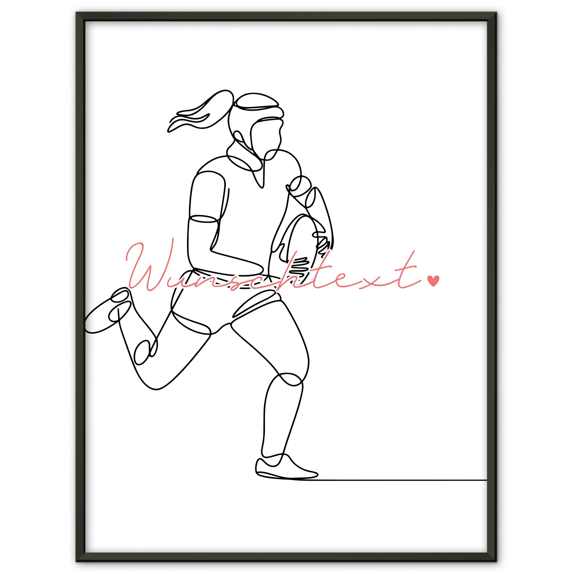 Personalisiertes Poster Lineart Rugby Geschenk Tochter & Schwester für Rugbyspieler Rugbyspielerin rugby