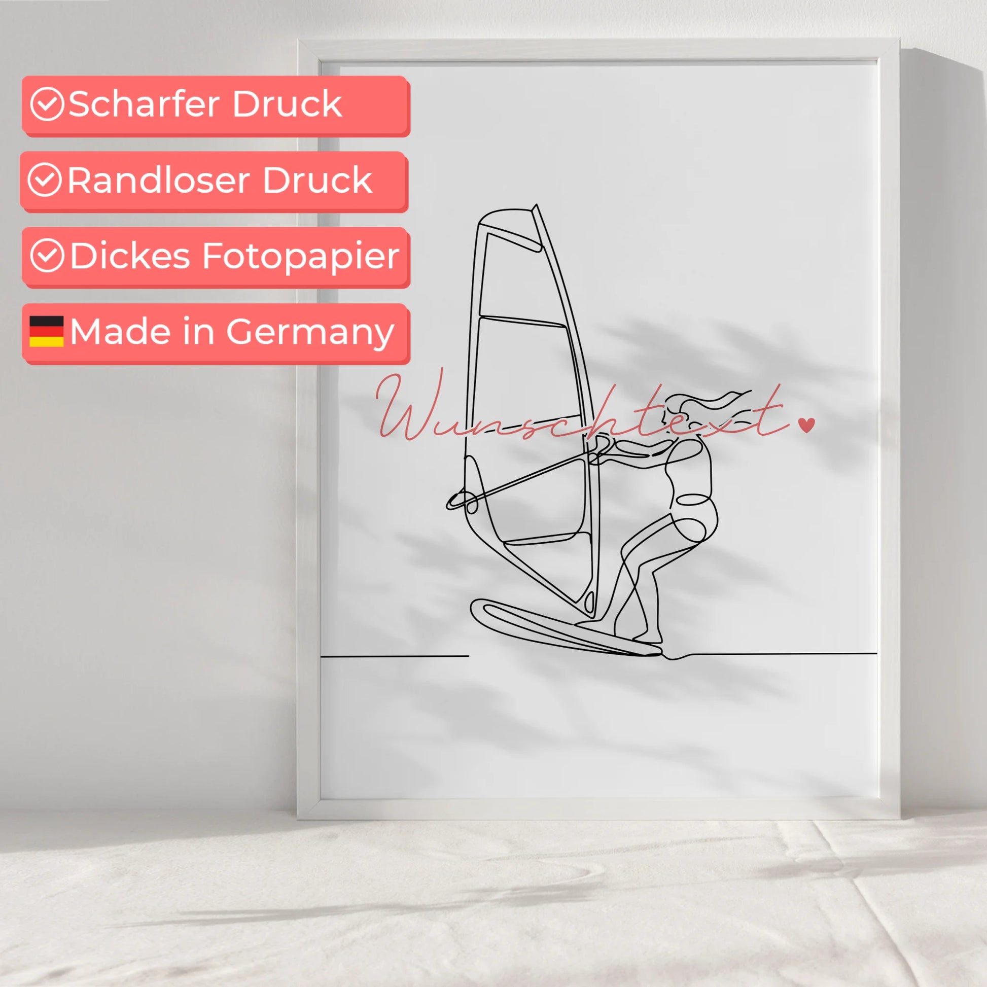Personalisiertes Poster Lineart Windsurfen Geschenk Tochter & Schwester für Windsurfer Windsurferin Windsurfing
