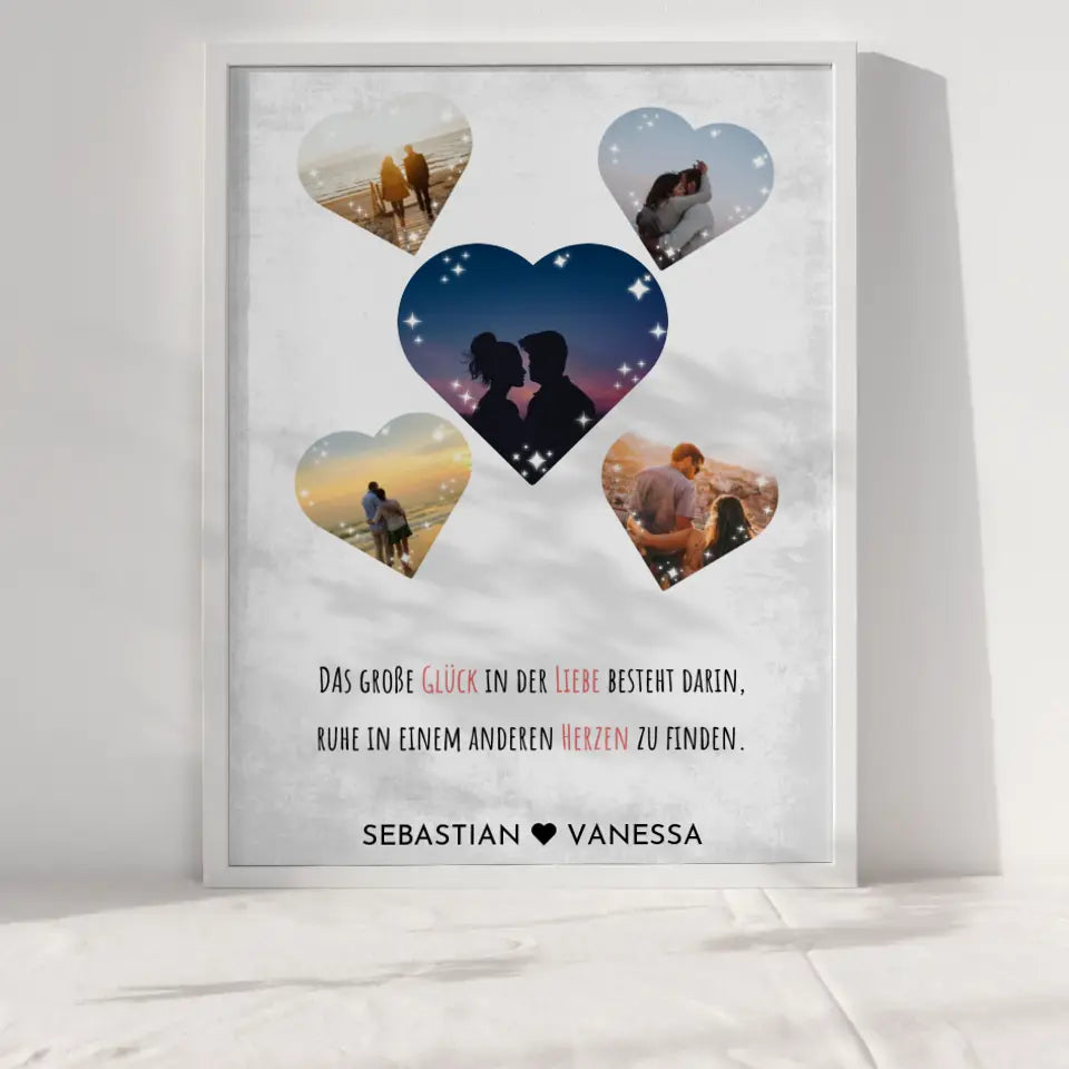 Personalisiertes Poster mit 5 Herzen Liebe Mit Fotos & Namen